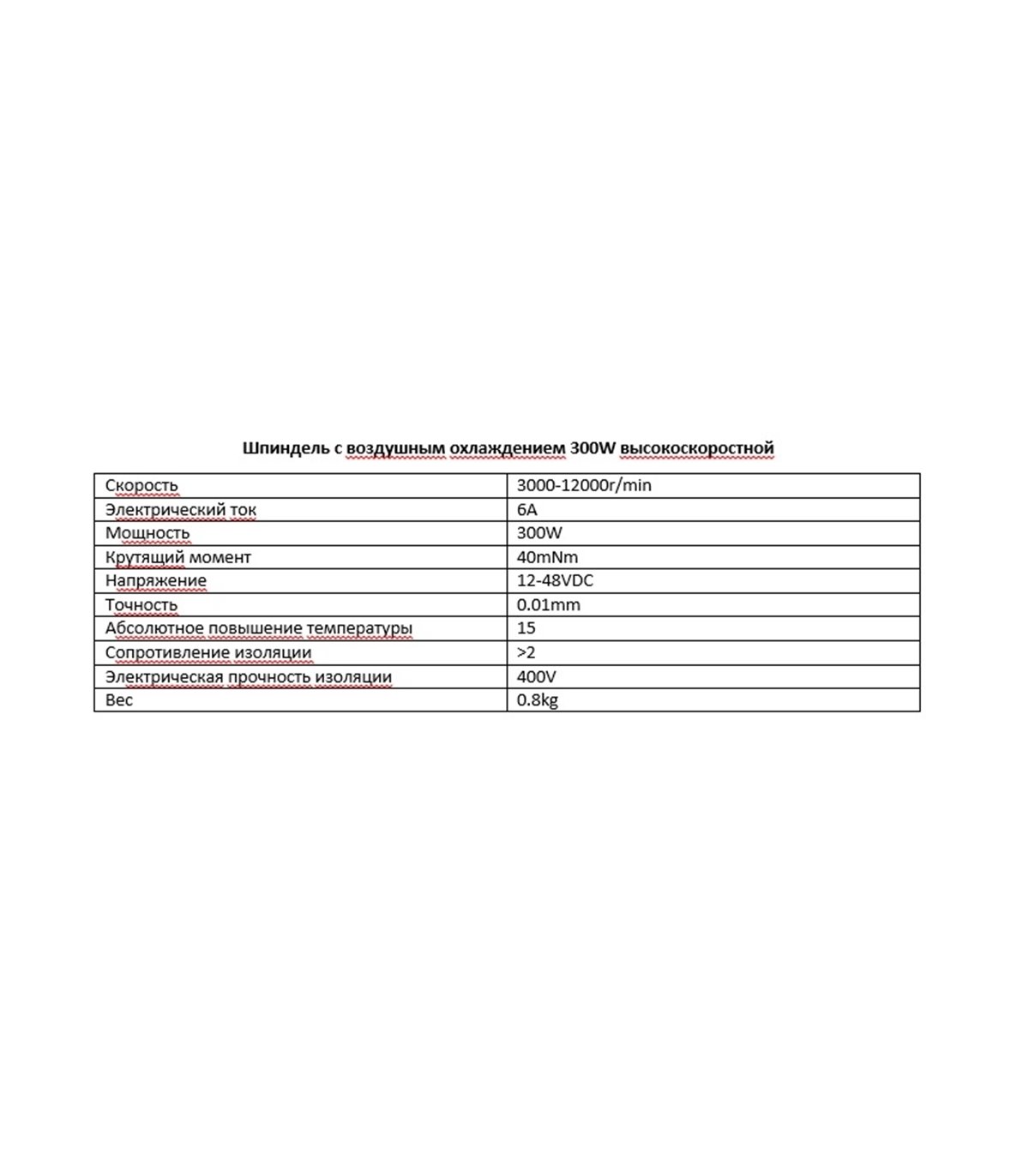 Шпиндель с воздушным охлаждением 300W высокоскоростной. Технические характеристики указаны на фото. Блок питания в комплект не входит.