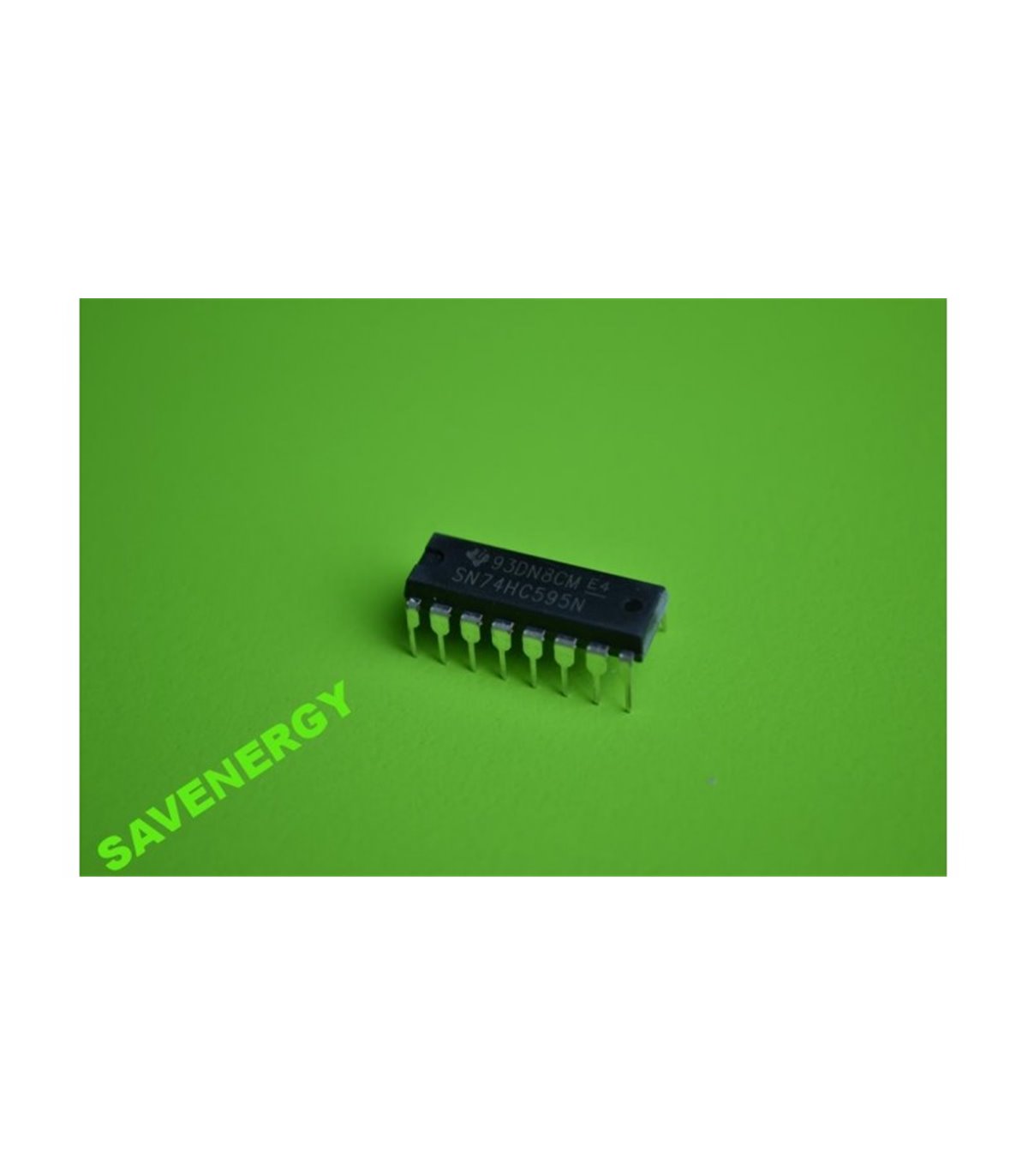 Микросхема 74HC595 — один из самых распространённых сдвиговых регистров: синхронный, с регистром данных (latch). Она позволяет увеличивать количество выходов микроконтроллера.