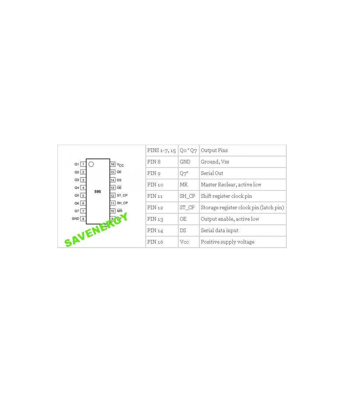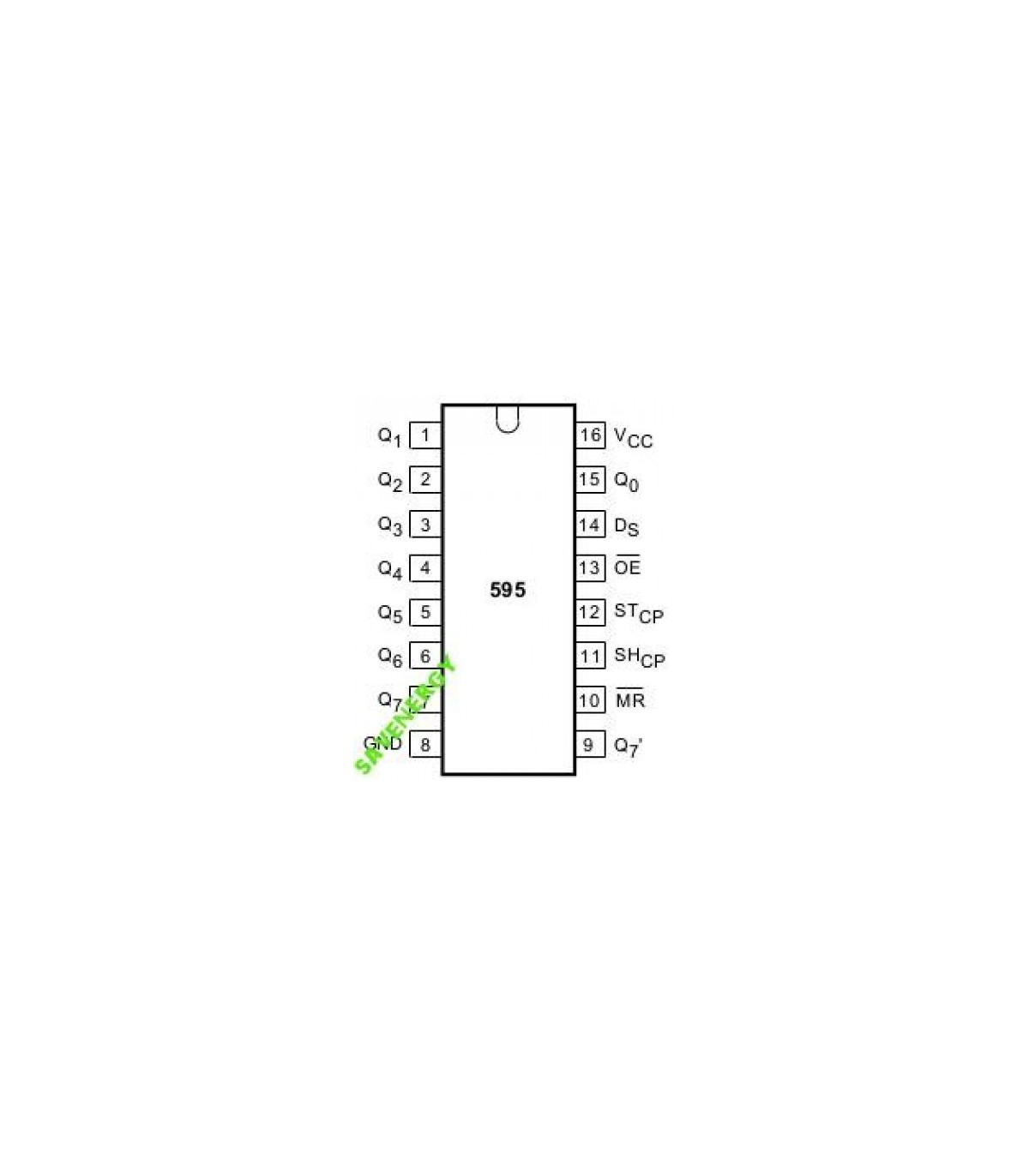 Чип преобразовывает входящий последовательный сигнал на 1 пине (Ds) в выходной параллельный на 8 пинах (Qx). Последовательная передача синхронна: для такта используется дополнительный пин (SHcp). Также отдельным пином управляется регистр данных (STcp), что позволяет изменять сигнал на 8 выходах единовременно, когда все данные переданы.