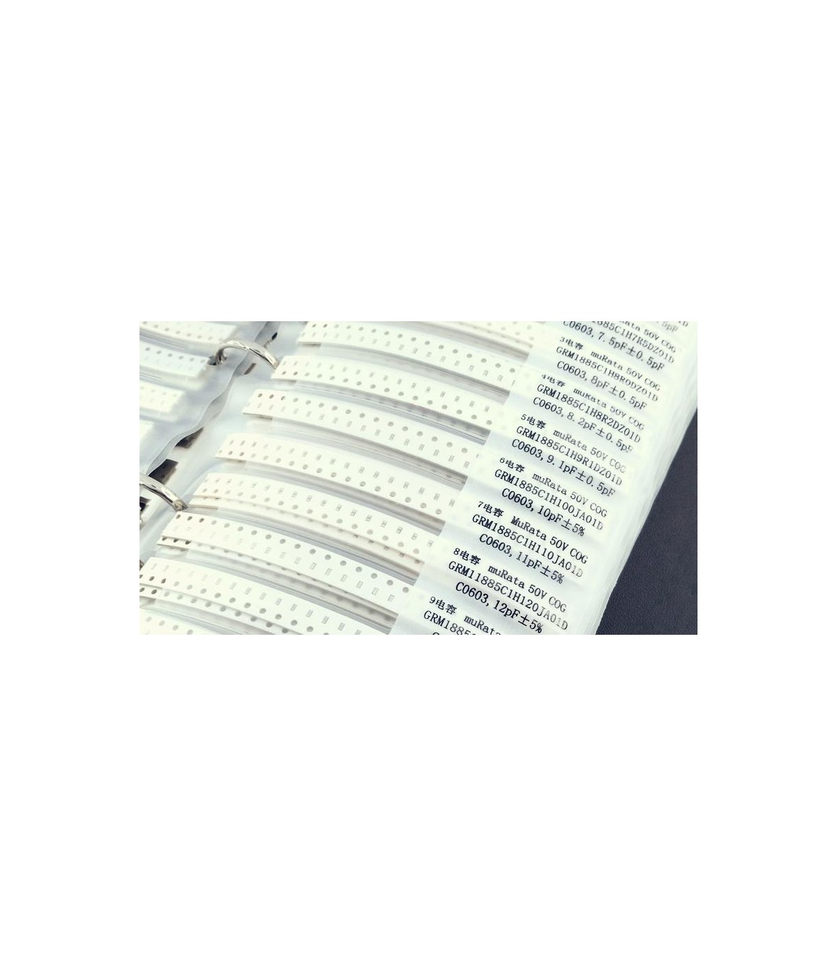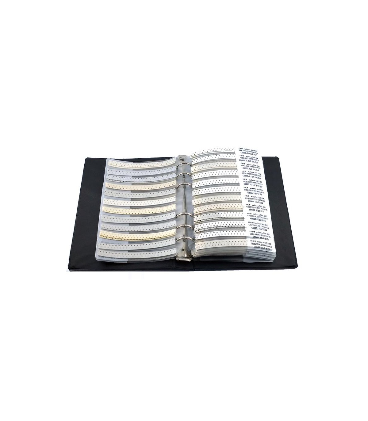 Набор конденсаторов SMD 0603 110 видов по 50 штук в книжке. Изготовлен в виде удобной книжки-альбома. Каждая позиция в отдельной секции, подписана.