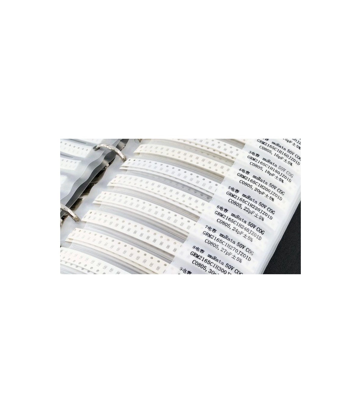 Набор конденсаторов SMD 0805 92 вида по 50 штук в книжке. Изготовлен в виде удобной книжки-альбома. Каждая позиция в отдельной секции, подписана.