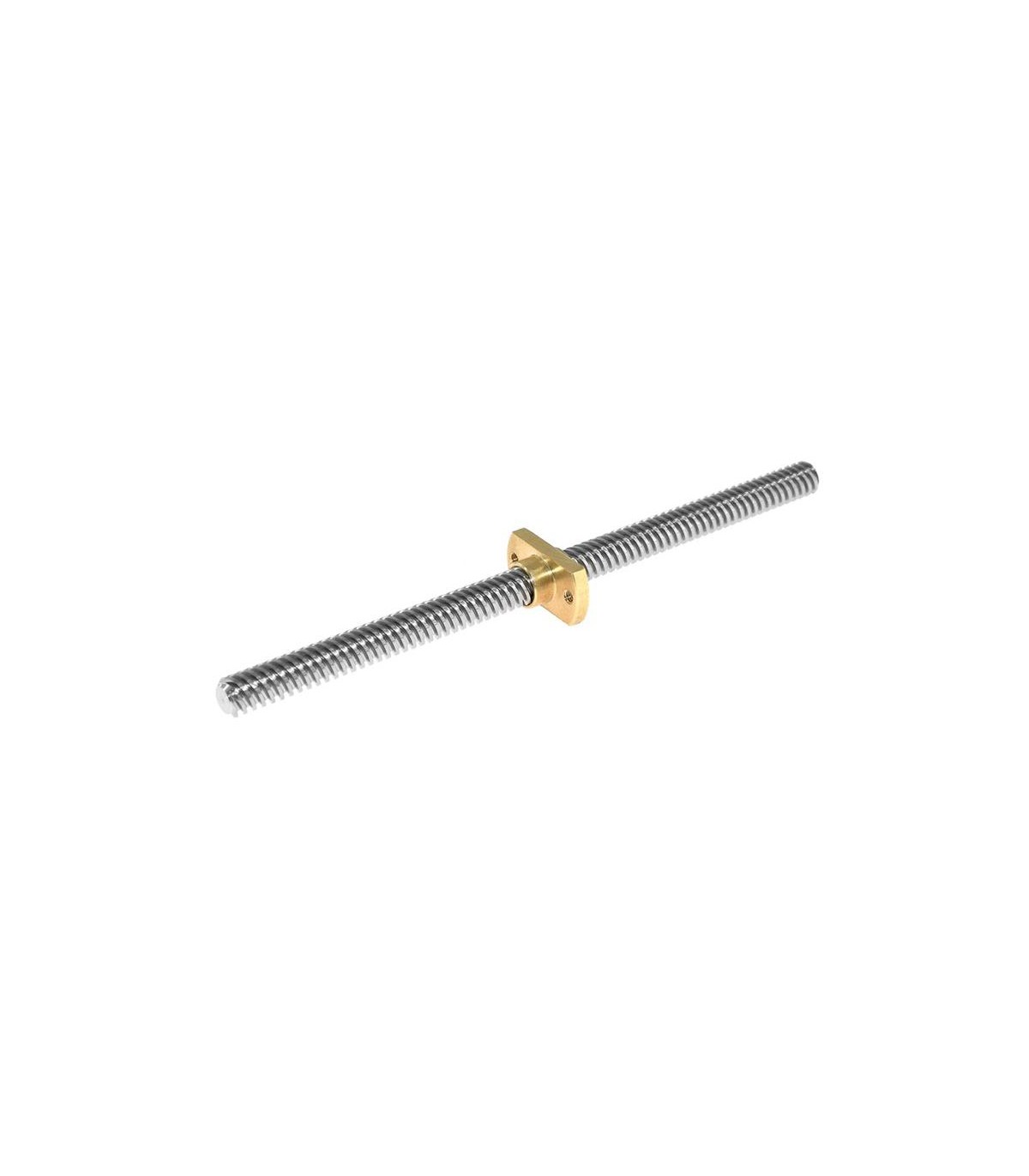 Гайка на четырехзаходный винт T8 шаг 3мм. В станкостроении и робототехнике трапецеидальный винт-гайка Т8 используются там, где существуют небольшие скорости вращения при преобразовании поступательного движения во вращательное движение. Данные узел работает на принципах скольжения и трения, поэтому трапецеидальный винт требователен к уходу за собой и чувствителен к высоким скоростям. Стоит отметить, что передача ШВП требует еще больше внимания к чистоте, что делает ее обслуживание затратным. Трапецеидальная резьба изнашивается значительно медленнее, а передача работает тихо. При производстве винтов применяется технология накатки резьбы, что делает ее максимально гладкой, а передачу точной и долговечной при эксплуатации. Одной из особенностей трапецеидального винта является такое свойство, как самоторможение. Еще одним преимуществом является доступная на винт ходовой трапецеидальный с гайкой цена, позволяющая снизить затраты на ремонт или себестоимость нового оборудования. Гайка винта имеет крепление под фланец. Трапецеидальные винты-гайки имеют следующие технические характеристики: Винт изготовлен из высококачественной нержавеющей стали гайка изготовлена из латунного сплава. диаметр винта – 8 мм диаметр внешний - 27мм Остальные размеры указаны на фото.