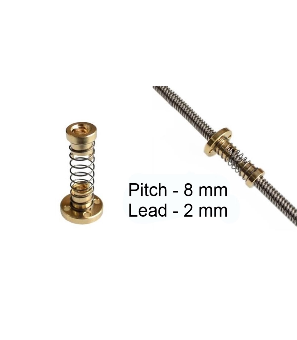 Гайка T8 с аммортизацией люфта 8*2мм для 3D-принтера. Под четырезаходный винт с шагом 2мм.