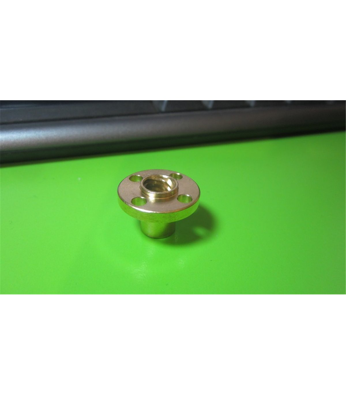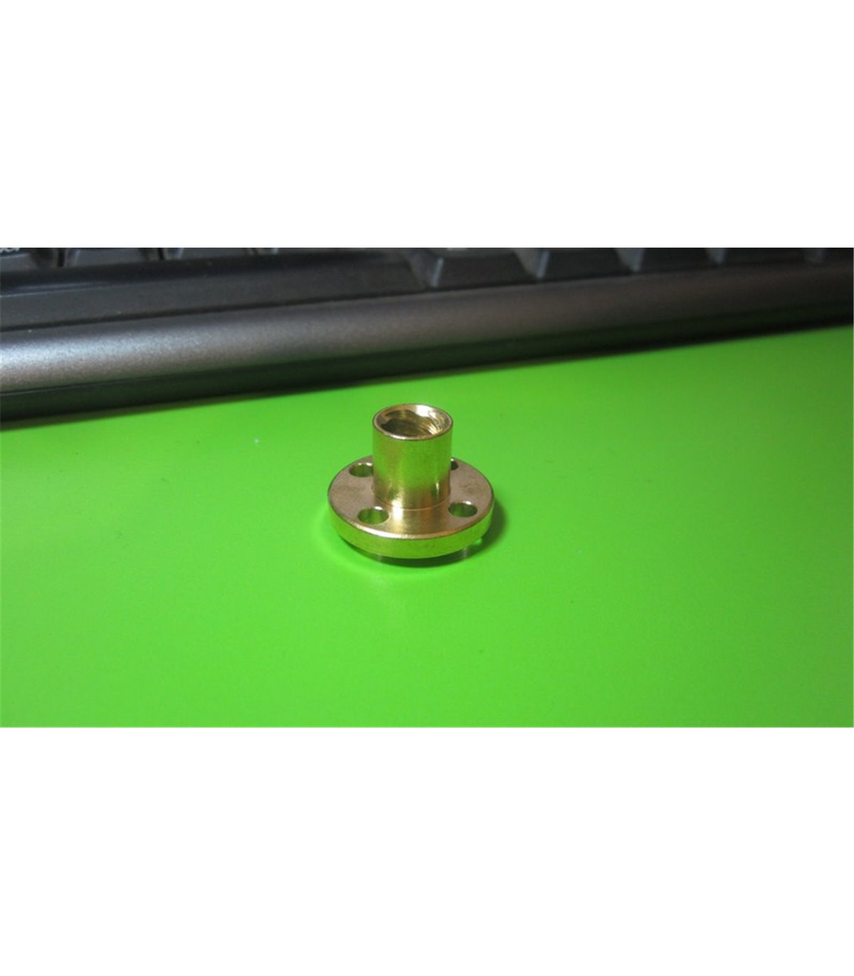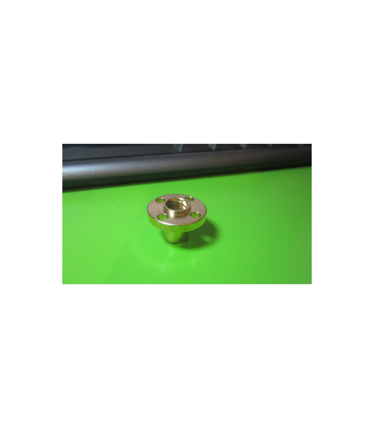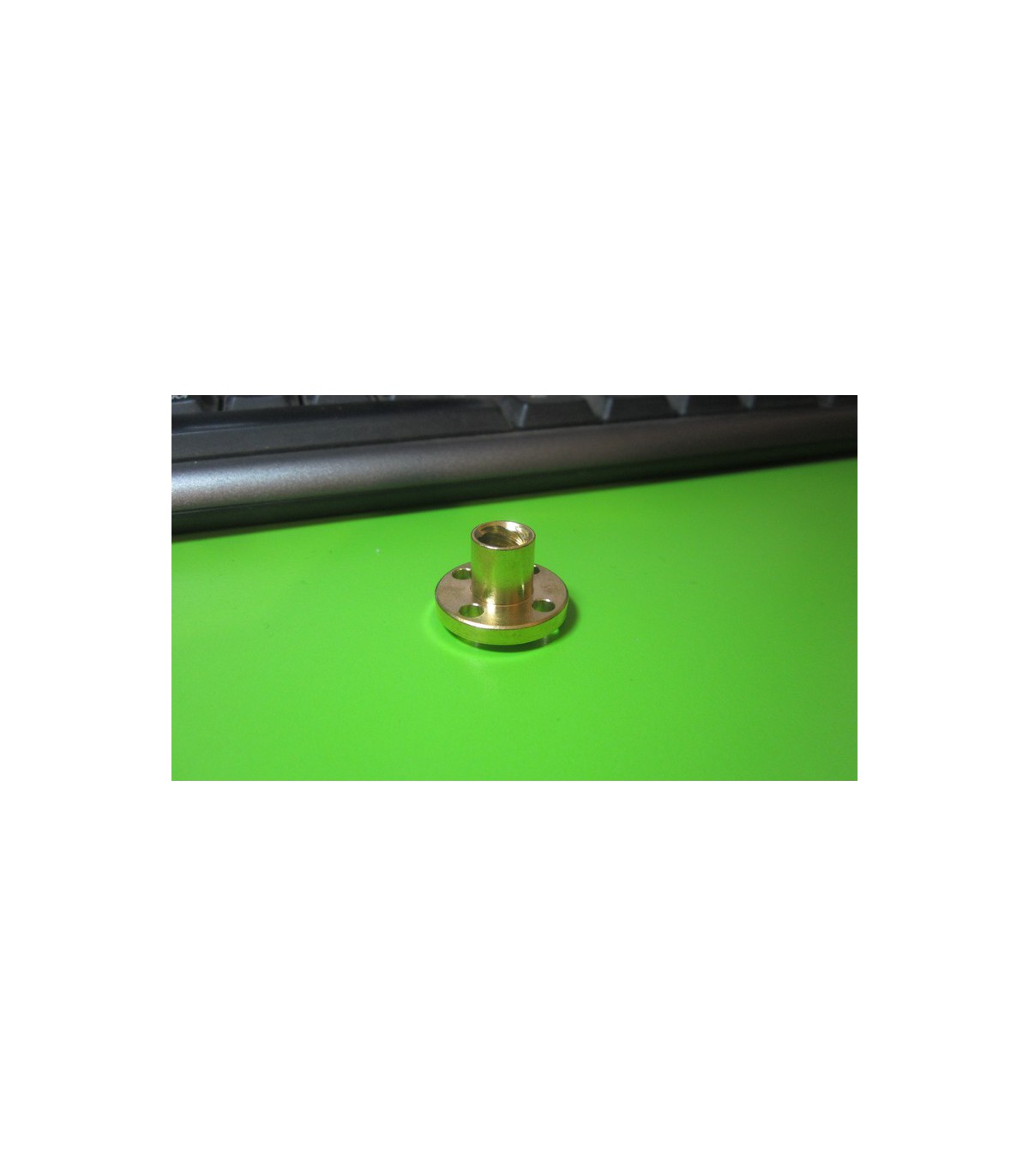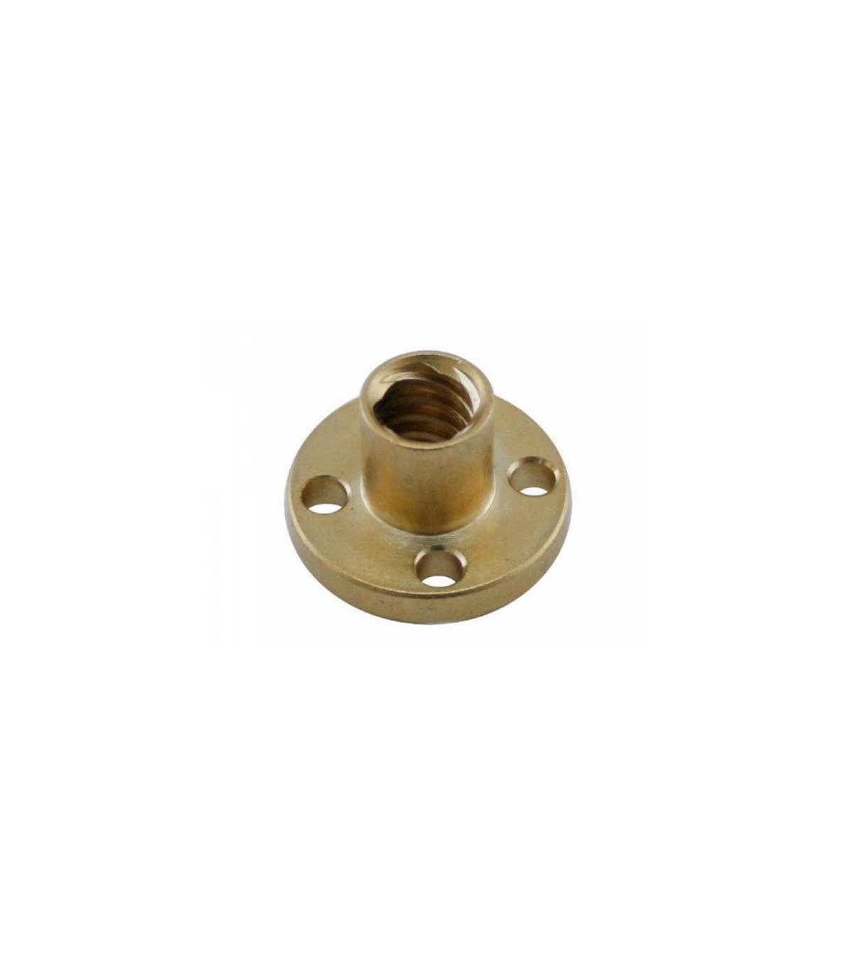 Т-образна гайка для трапециевидного винта T8*8mm. Для четырехзаходного винта с шагом 8мм. Габариты гайки (высота х диаметр): 15*22мм. Диаметр крепежных отверстий - 3.5мм. Материал - латунь.
