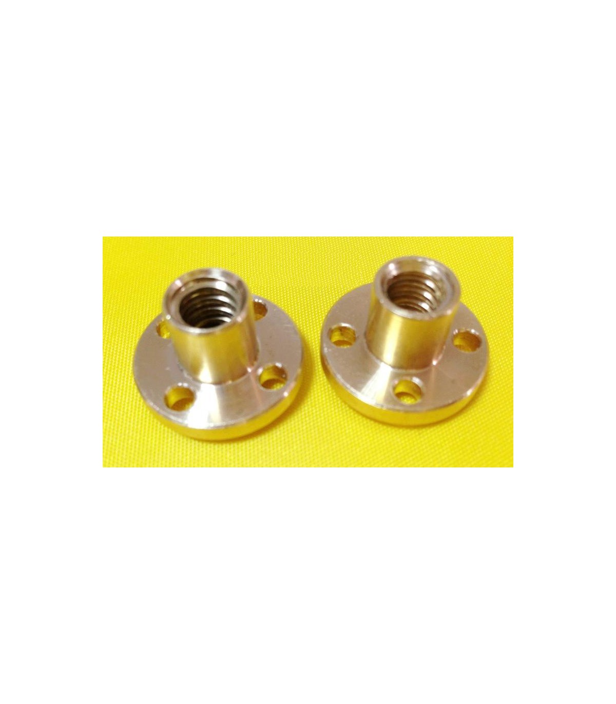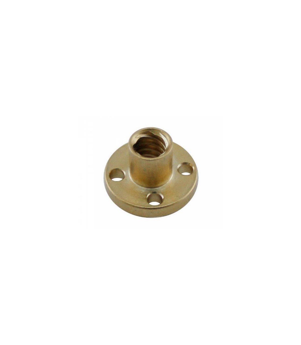 Т-образна гайка для трапециевидного винта T8*2mm. Для однозаходного винта с шагом 2мм. Габариты гайки (высота х диаметр): 15*22мм. Диаметр крепежных отверстий - 3.5мм. Материал - латунь.