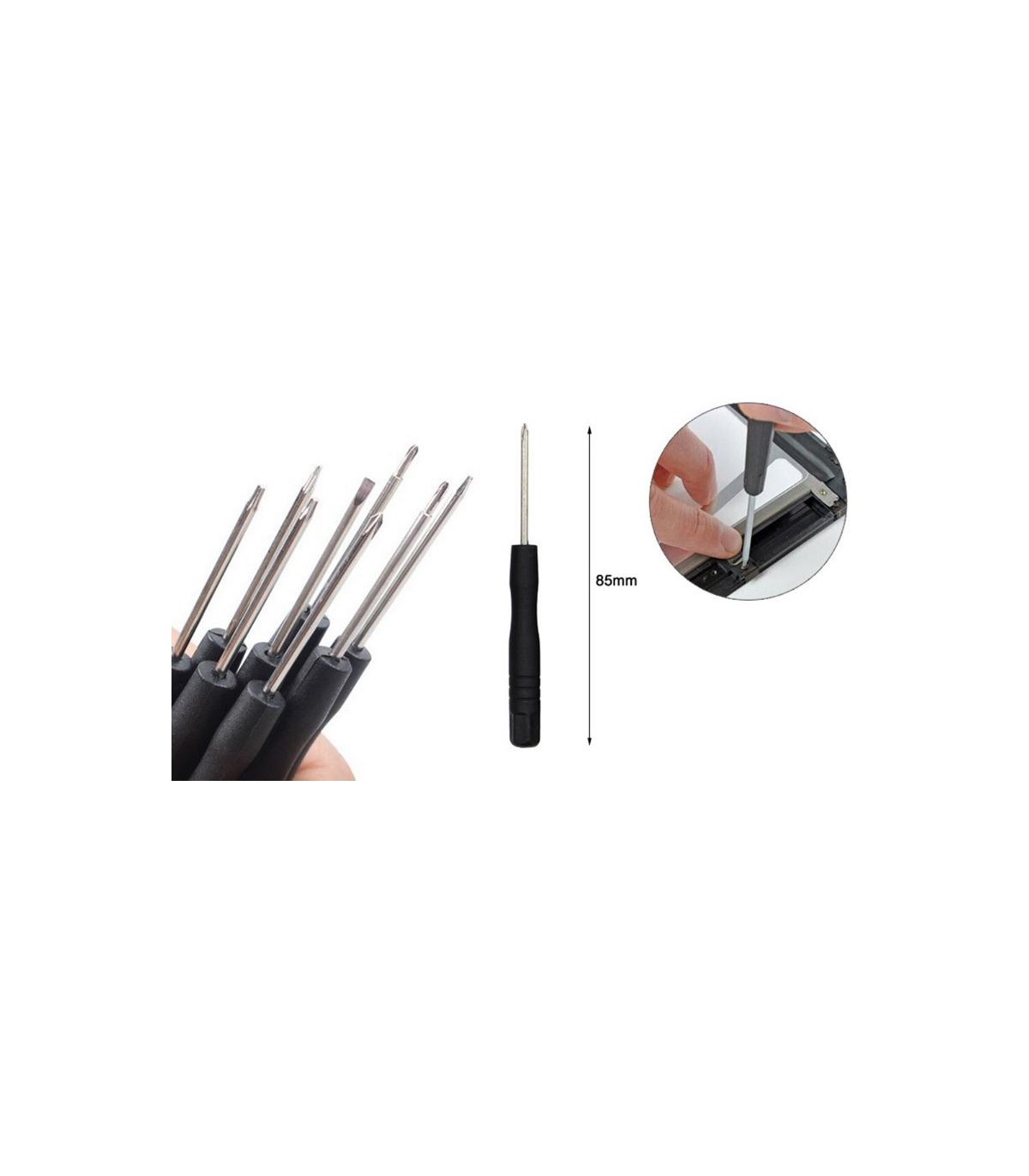 Данный набор инструмента позволяет открывать телефоны и планшеты легко и без ущерба для устройства. Всего 7 штук, а именно: 0,8 пятизвездочная отвертка, 1,5 отвертка, лезвие для разборки, ломтик для разборки, присоска...