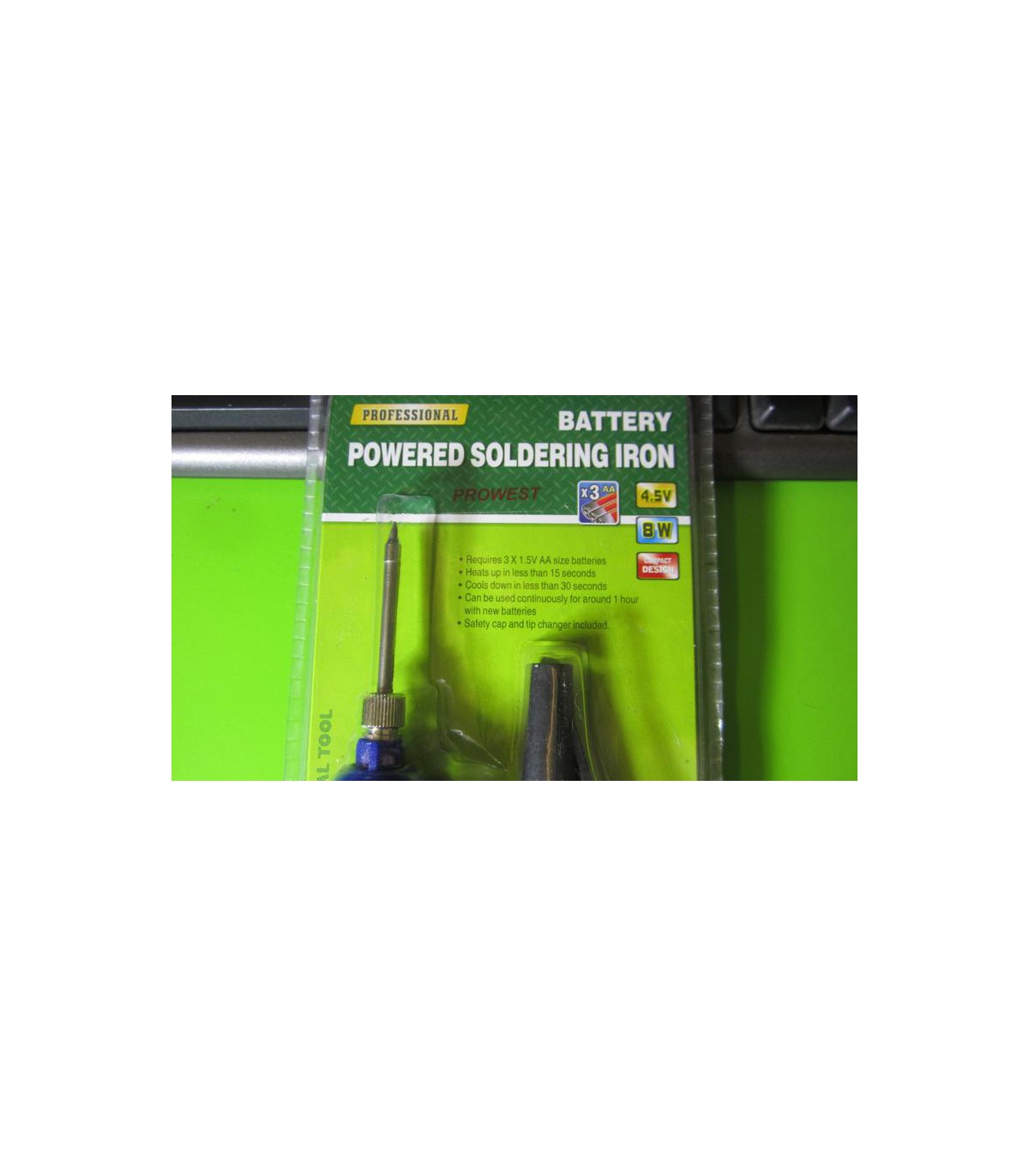 Технические характеристики Питание: 3 батарейки АА (4,5 В) Мощность: 8 Вт Нагрев за 15 секунд Долговечное жало