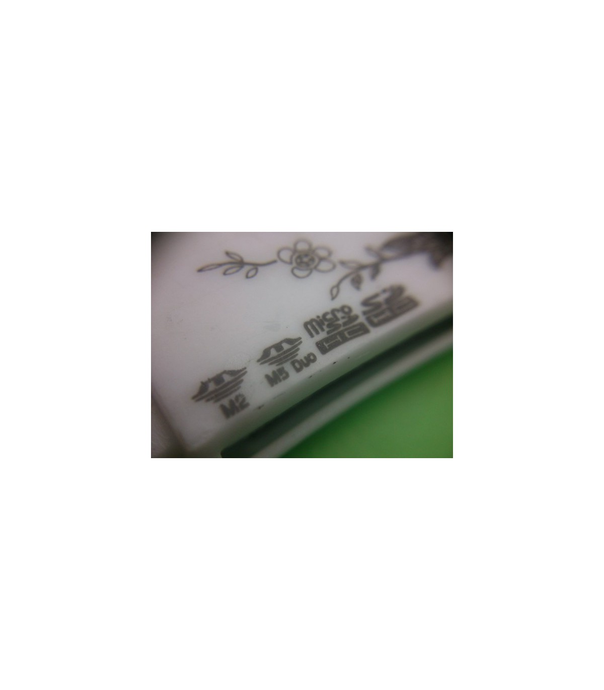Самым главным плюсом этого картридера является поддержка большого количества различных карт памяти. Тестировались три формата: SD, MicroSD (он же T-Flash) и Memory Stick Pro Duo. Картридер USB2.0 4 в 1 для SD, microSD, M2 (MemoryStick), M5 Duo (Memory Stick Pro Duo).