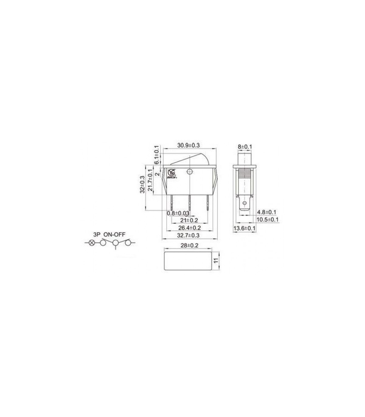 Переключатель монтажный двухрежимный. Без подсветки, два контакты, черный. Размер указаный на фото. Технические характеристики Ток: 16A Напряжение: 250V Размер корпуса: 26.5*10.5мм (более детально указано на рисунке)