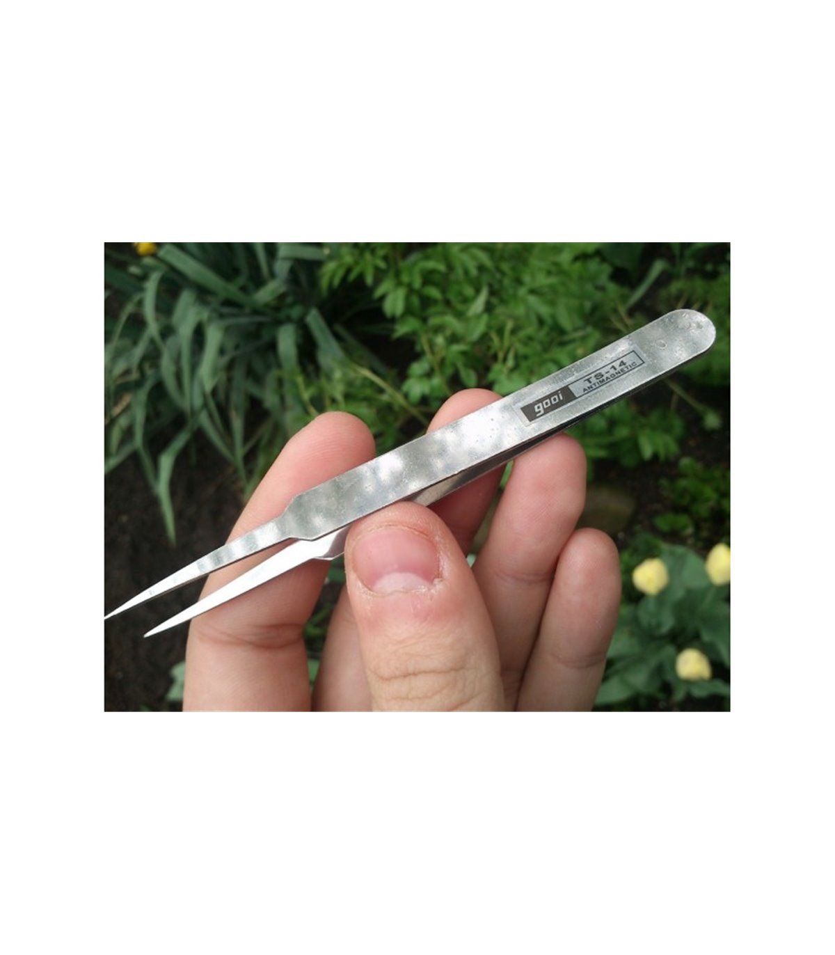 Простой магнитный пинцет из нержавеющей стали без антистатического и диэлектрического покрытия от фирмы GOOI. Материал – нержавеющая сталь Можно использовать для пайки интегральных схем, установки или замены компонентов.