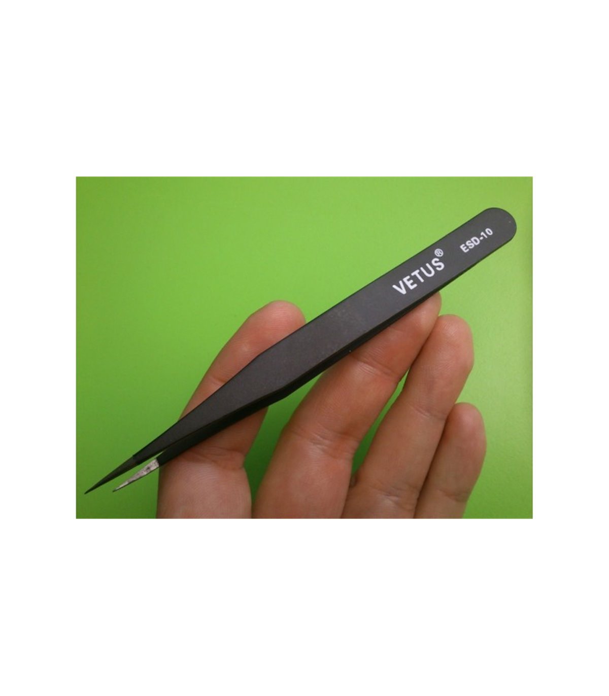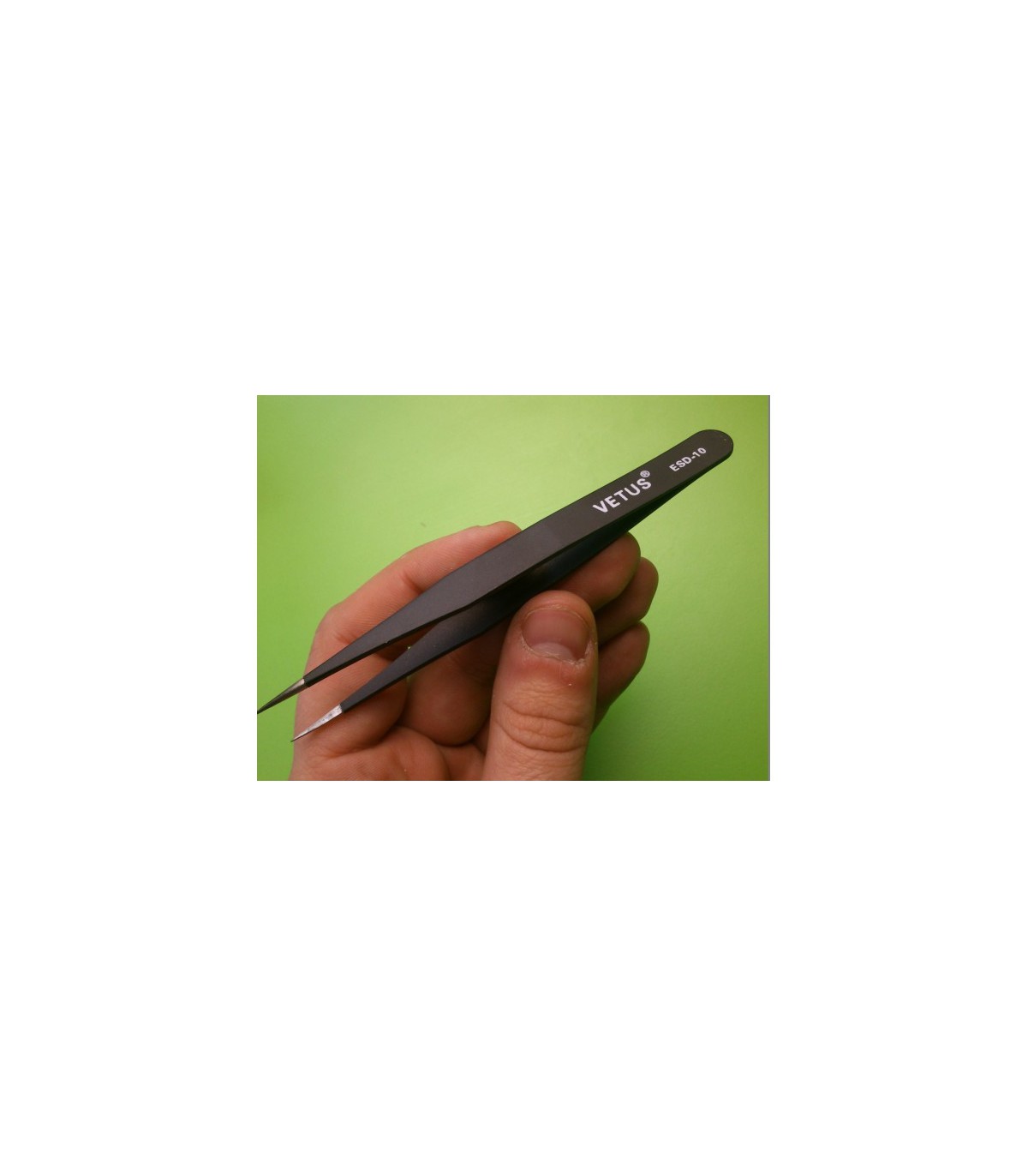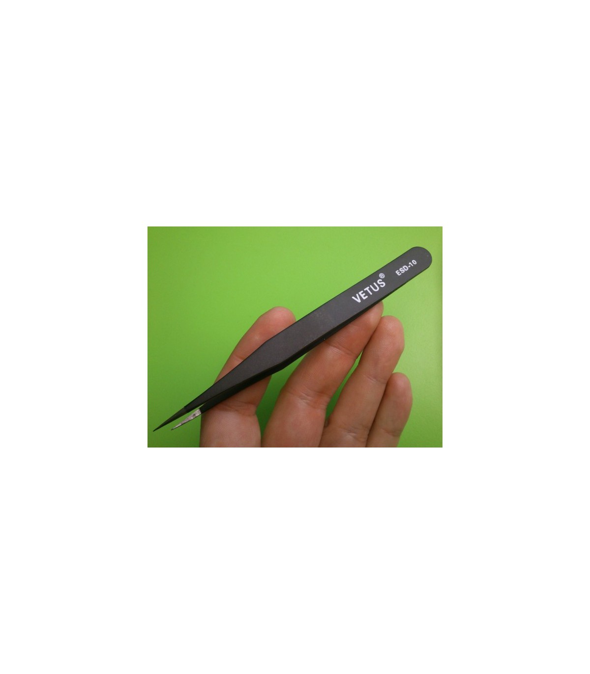 Высококачественный, прямой, ультратонкий пинцет Vetus ESD-10. Этот пинцет имеет очень острые и тонкие, как иголки кончики.