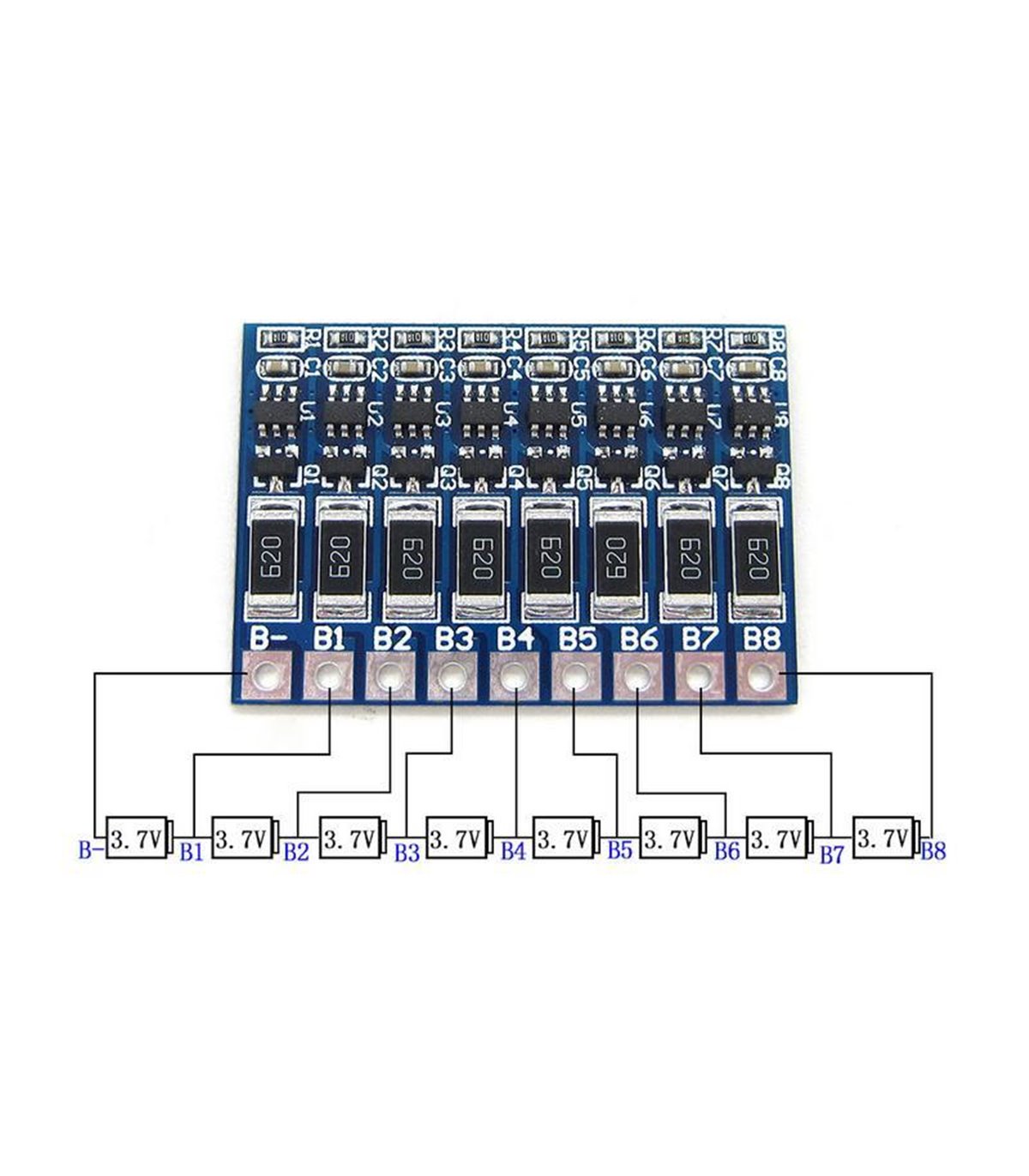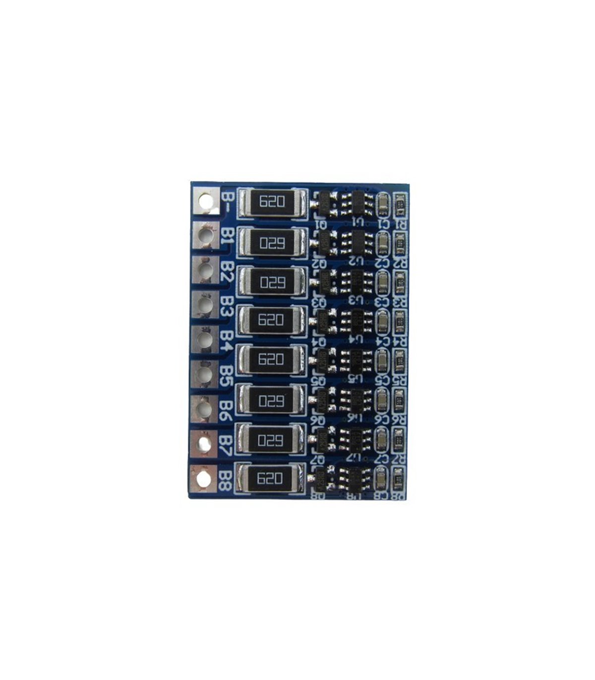 Балансир активный для LiIon аккумуляторов 8S 4.2V. Плата балансировки для 8 аккумуляторов подходит для несбалансированной зарядки литий-ионных батарей, для выравнивания заряда.Технические характеристикиТок балансировки - 66 мА.Напряжение выравнивания: 4,2ВРазмеры: 37,3 * 25,8 * 2,4 мм