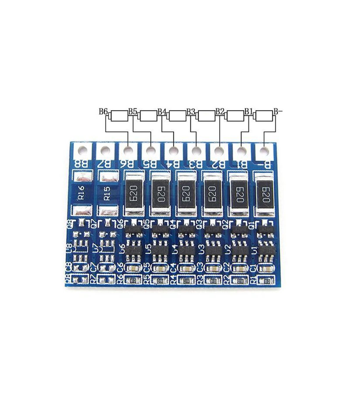 Плата балансировки для 6 аккумуляторов подходит для несбалансированной зарядки литий-ионных батарей, для выравнивания заряда. Ток балансировки - 66 мА. Напряжение выравнивания: 4,2В Размеры: 37,3 * 25,8 * 2,4 мм