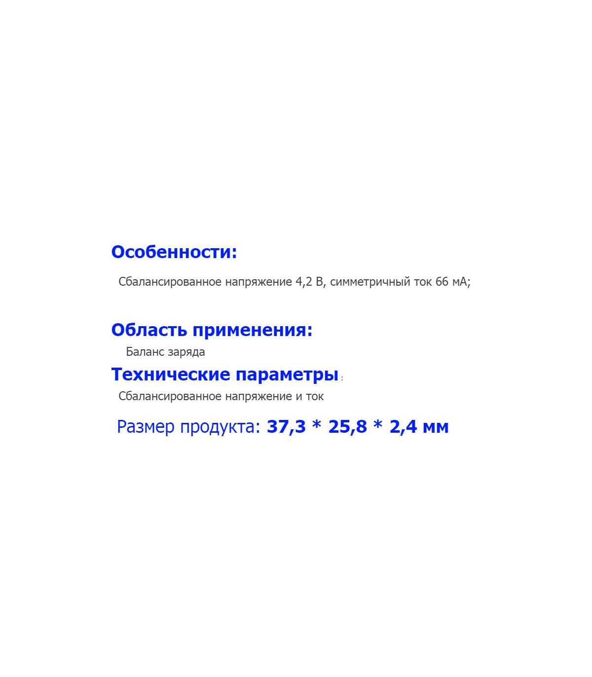 Сбалансированная напряжение: 4,2В Сбалансированный ток: 66мА