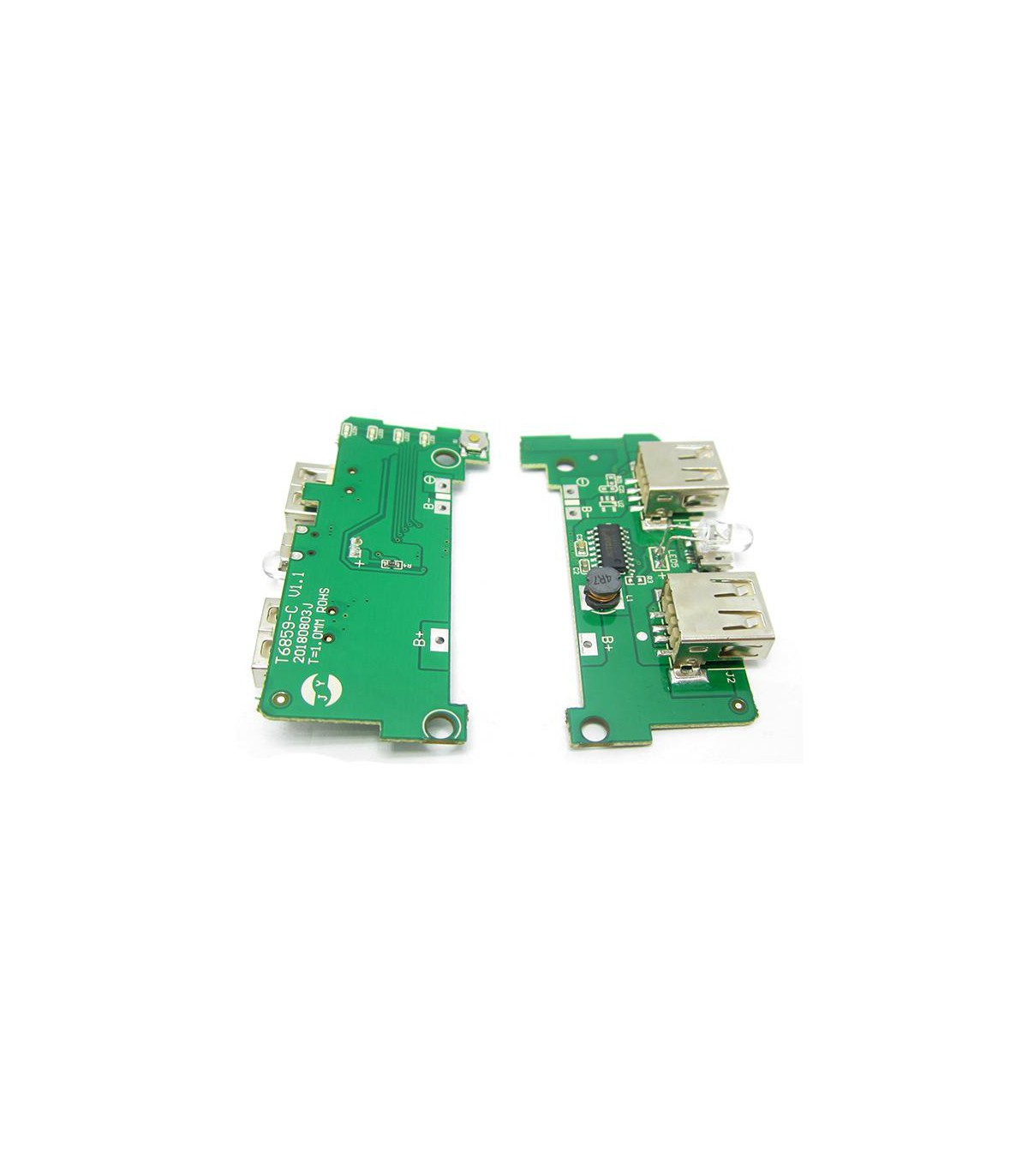 Плата к Power Bank на 1-2-3-4-5-6 аккумулятора формфактора 18650, который способен заряжать устройства с силой тока в 5V 2А. Если подключить 2 устройства одновременно, то ток распределится равномерно на 2 устройства. Аккумулятори соединять паралельно. Аккумуляторы можно докупить в нашем магазине с реальными замерами емкостей. Идеально подходит к нашем павербанкам на 4 и 6 аккумуляторов. Плата на HotChip 4906 и с двумя контроллерами питания 9926А. Технические характеристики Входная мощность micro USB IN: 5V/1A-2A (можно зарядить от ноутбука, компьютера) Выходная мощность 2 х USB OUT: 5V/2A, тест при нагрузке 2А резистора отдала 4.7V 1.69A Использовать аккумуляторы без защиты, так как на плате есть защита от переразряда и перезаряда аккумуляторов Защита от КЗ Размер: 67 х 35 х 8 мм