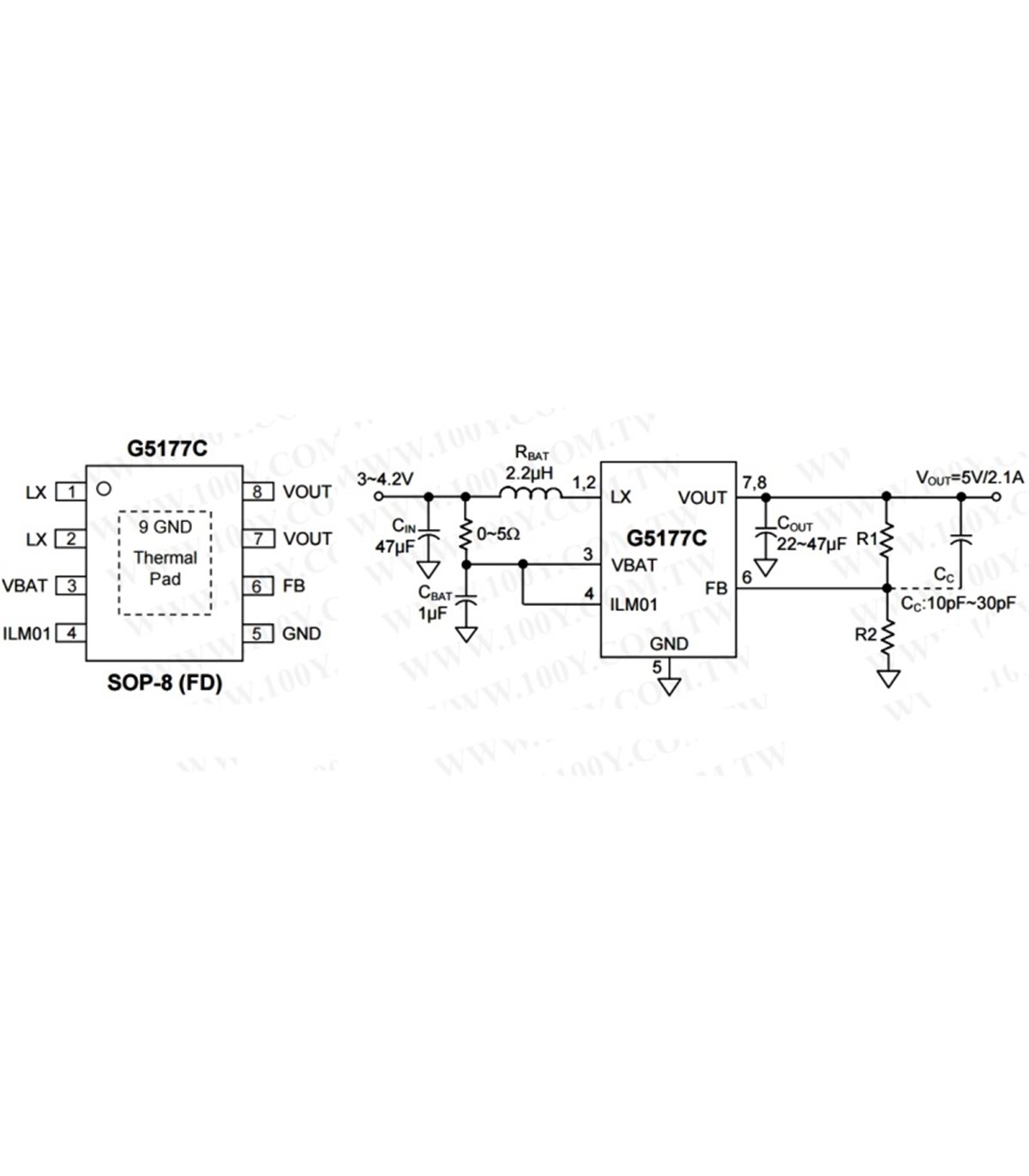 Повышающая микросхема 5V 2.1A для самодельного Power Bank GMT G5177C. Эта микросхема обеспечивает с легкостью, и ток заявлен до 3А, и отключение выхода есть. Используется в Power Bank Tomo. Технические характеристики КПД: до 90% при I = 2A, Vвых = 3.3...5V Низкий потребляемый ток: 70mA Выходной ток: 3A при Vвых = 3.3...5V Частота ШИМ: 500 кГц Регулируемая мощность Защита от перегрузки / короткого замыкания Термовыключение Корпус: SOP8