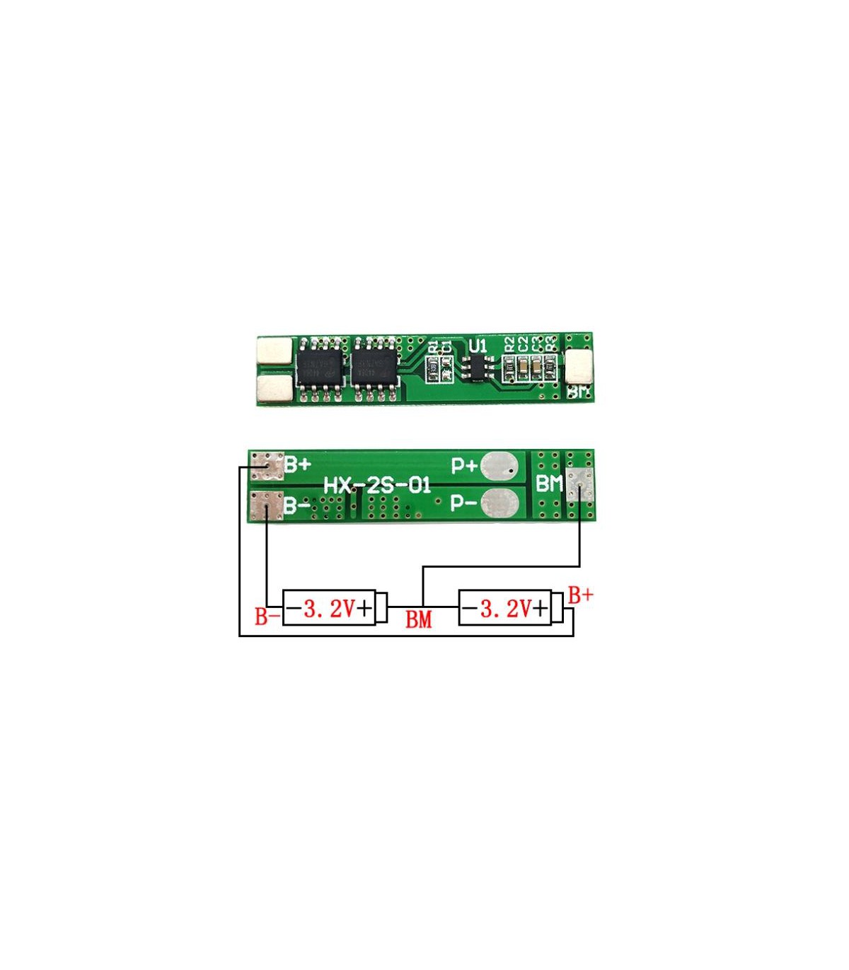 Плата защиты BMS контроллер для литий фосфат LiFePo 2S 6.4V 5A.