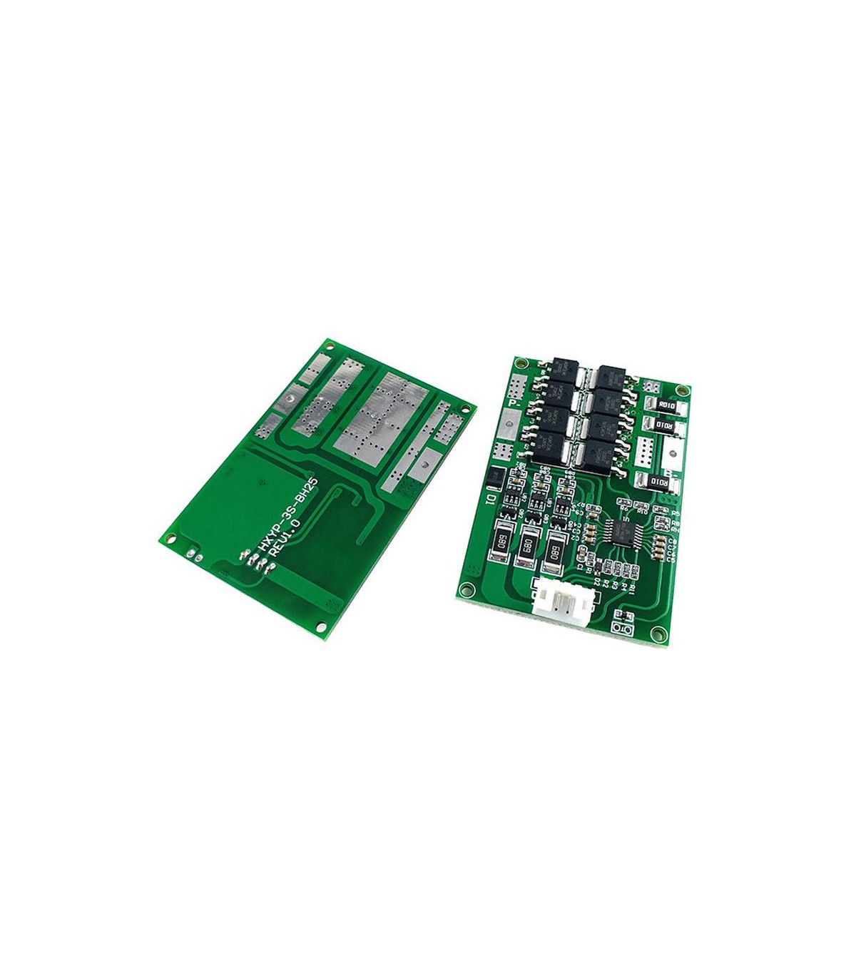 К модулю HXYP-3S-BH25 подключается одновременно три аккумуляторы (18650). Особенностями данного контроллера заряда являются: защита от короткого замыкания и защита от переразряда и перезаряда. Максимальный рабочий ток данного BMS контроллера составляет 20 А, пусковой ток может достигать 30 А, а ток покоя при этом не превышает 30 мкА. Отключение аккумулятора происходит при достижении напряжения 3,65 В, а разряда при снижении напряжения до 2,35 В.