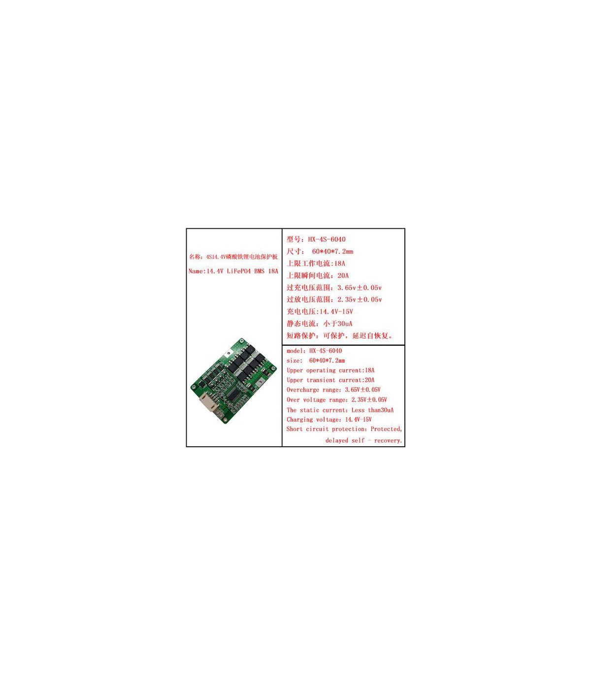 Плата захисту заряду розряду BMS 4 x LiFePo 12.8V 9A. Технічні характеристики Максимальний струм розряду: 9 А Максимальна напруга при зарядці: 3.75 В ± 0.025 В Номінальна напруга при зарядці: 3.6 В ± 0.025 В...