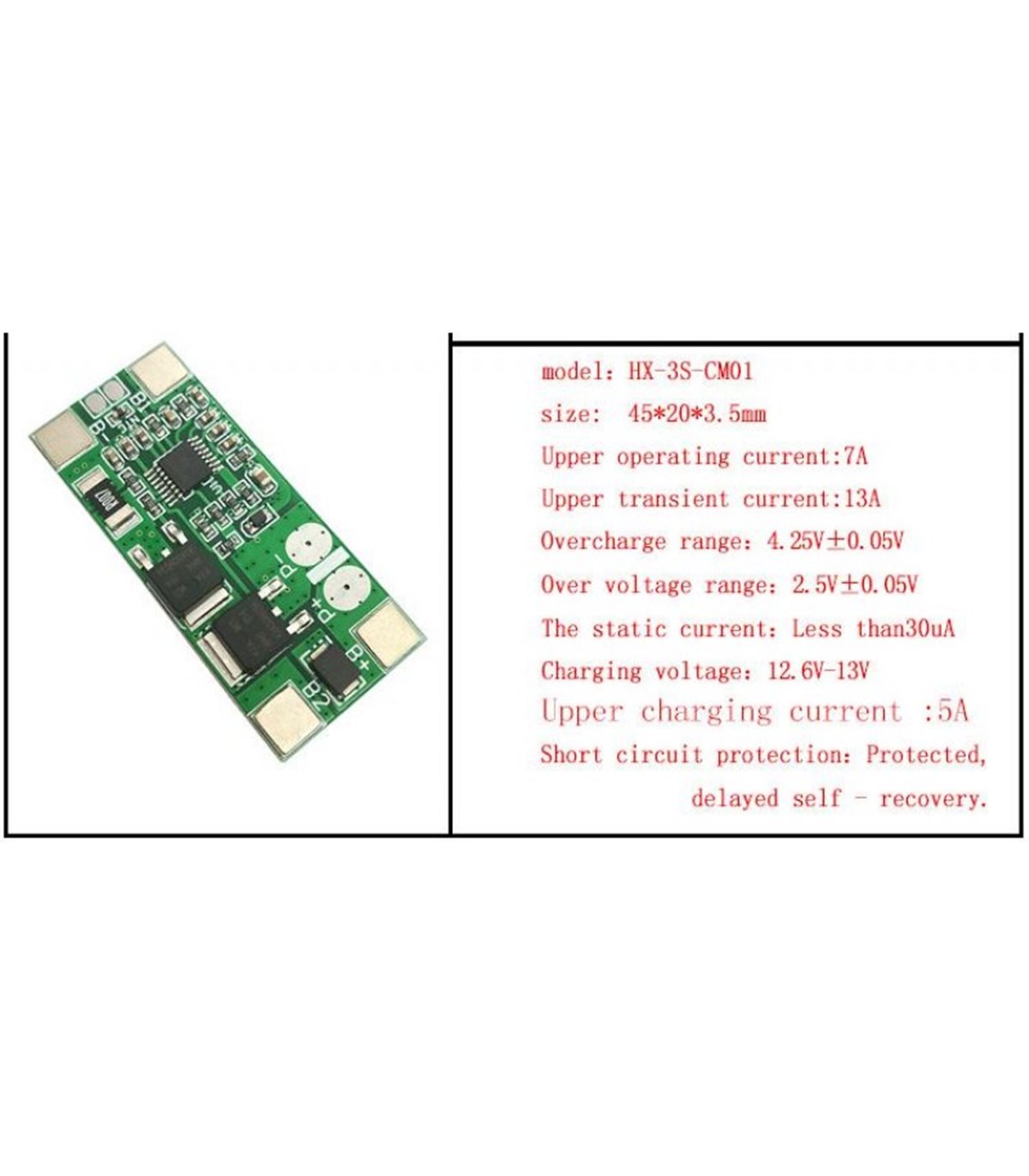 Плата защиты литиевого аккумулятора BMS Li-Ion 3S 12.6V 7A.Datasheet