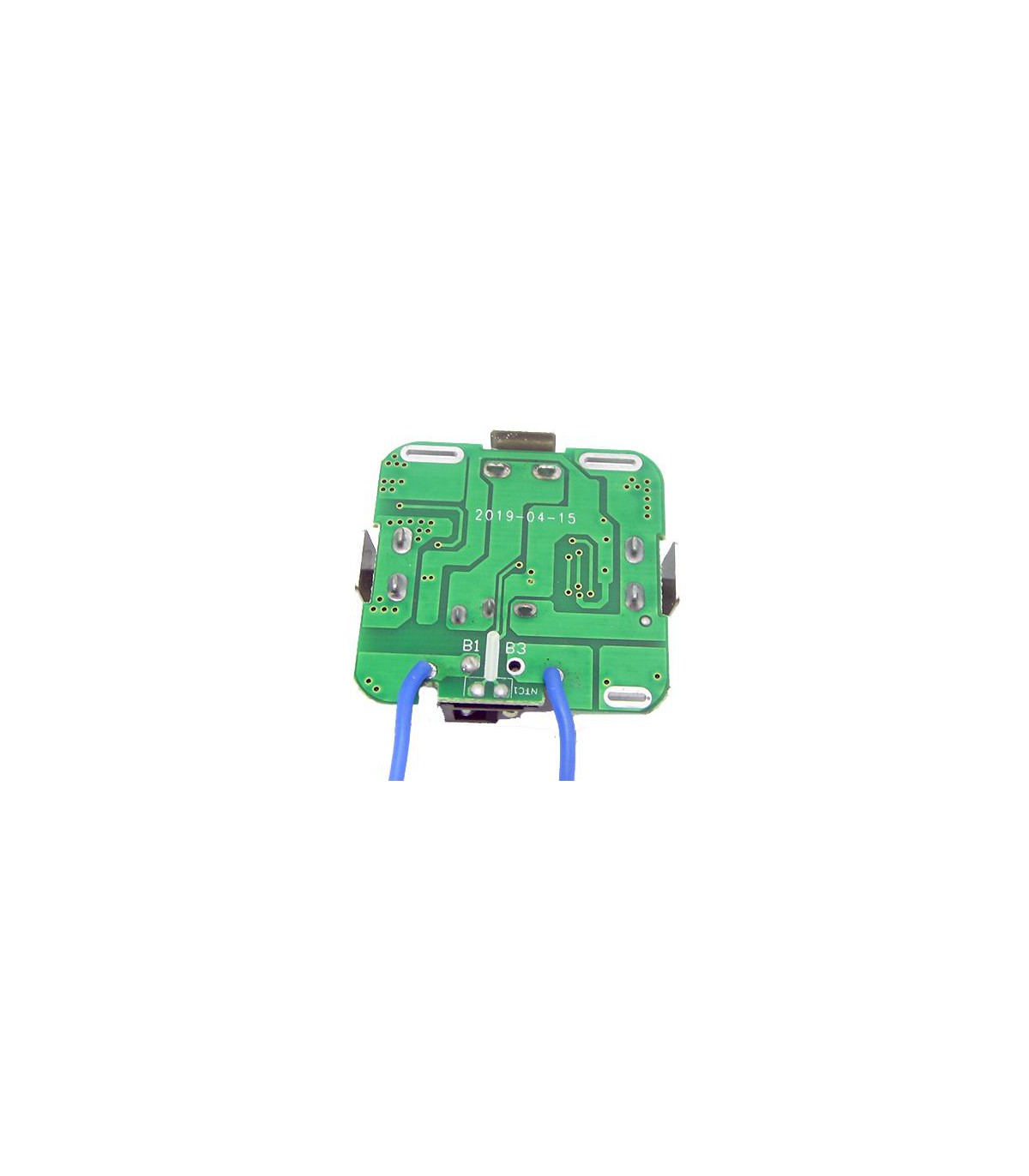 Плата для аккумулятора шуруповерта BMS Li-Ion 4S 14.4V 30A. Схема на рисунке. Подходит для замены старых никель-кадмиевых аккумуляторов на литиевые акумуляторы. Использовать только высокострумные аккумуляторы, так как в шуруповертах максимальный ток достигает 20-25А. Плата шуруповерта дрели 4S 18650 Li-Ion 30A. Подходит для замены или переупаковка аккумуляторов в электроинструменте. Замена кадмиевого аккумулятора на литиевый в шуруповерт. Имеет размер 4*4см, идеально подходит под элементы размером 18650, которые размещены квадратом. Технические характеристики Номинальное напряжение батареи - 4*3.7В Диапазон рабочего напряжения - 11.6 - 16.8В Напряжение заряда - 4*4.2В (макс) Напряжение разряда - 4*2.9В (макс) Ток заряда - 1.5А (макс) Ток разряда - 30А (макс) Рабочая температура - 25 С После подключения платы к аккумулятору на выходе платы скорее всего будет отсутствовать напряжение, так как плату нужно активировать. Для этого на контакты С- и P + нужно подать напряжение 16.8V. То есть она активируется после подключения к зарядке. Делается это всего один раз после того как впаяли контакты аккумулятора к плате защиты, потом все работает как положено. Есть возможность подключения датчика температуры, контакт NTC на плате. Перед пайкой аккумуляторы нужно сначала сбалансировать, на плате балансира нет. Если при работе плата уходит в защиту, отключается, - нужно подать напряжение от зарядного. При перепаковке с никель-кадмия, - старое зарядное использовать нельзя.