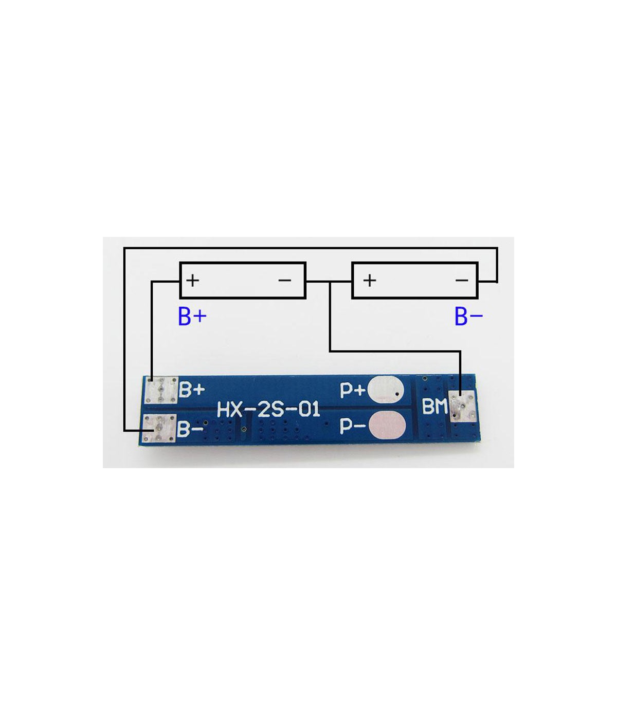 Контроллер заряду розряду 2-х Li - Ion 18650 8.4V 7A. Технічні характеристики Максимальна напруга при зарядці: 4.25-4.35v ±0.05 В Напруга переразряда: 2.5-3.0v ±0.05 В Максимальний безперервний струм: 5 А Максимальний піковий струм: 7 А Робоча температура: - 40 -- + 50 З Температура хранения:- 40 -- + 80 М Живлення: 5 мкА Розмір: 38х8х2.5 мм На платі є захист від короткого замикання Підключення B+, B - Підключення акуммулятора P+, P - Підключення джерела живлення ра * якщо спрацював захист на платі, її треба поставити на зарядку