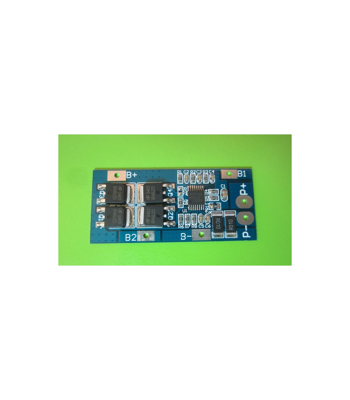 Контролер заряду розряду 3хLi-Ion 18650 12.6V 20A. Технічні характеристики Максимальний струм розряду: 20 А Максимальна напруга при зарядці: 4.25 В ± 0.025 В Перевантаження напруги: 4,35 ± 0,05 В Мінімальна напруга при розрядці: 2.75 В ± 0. 1 В Діапазон напруг на виході: 8.25-12.6 В Розмір: 51х23 мм Функції: захист від перезарядження, захист від перевантаження, захист від короткого замикання Підключення B +, B- пов'язано з акуммулятор (акуммулятор паралельно спаяними) 18650 P +, P- пов'язано з джерелом заряду і розряду
