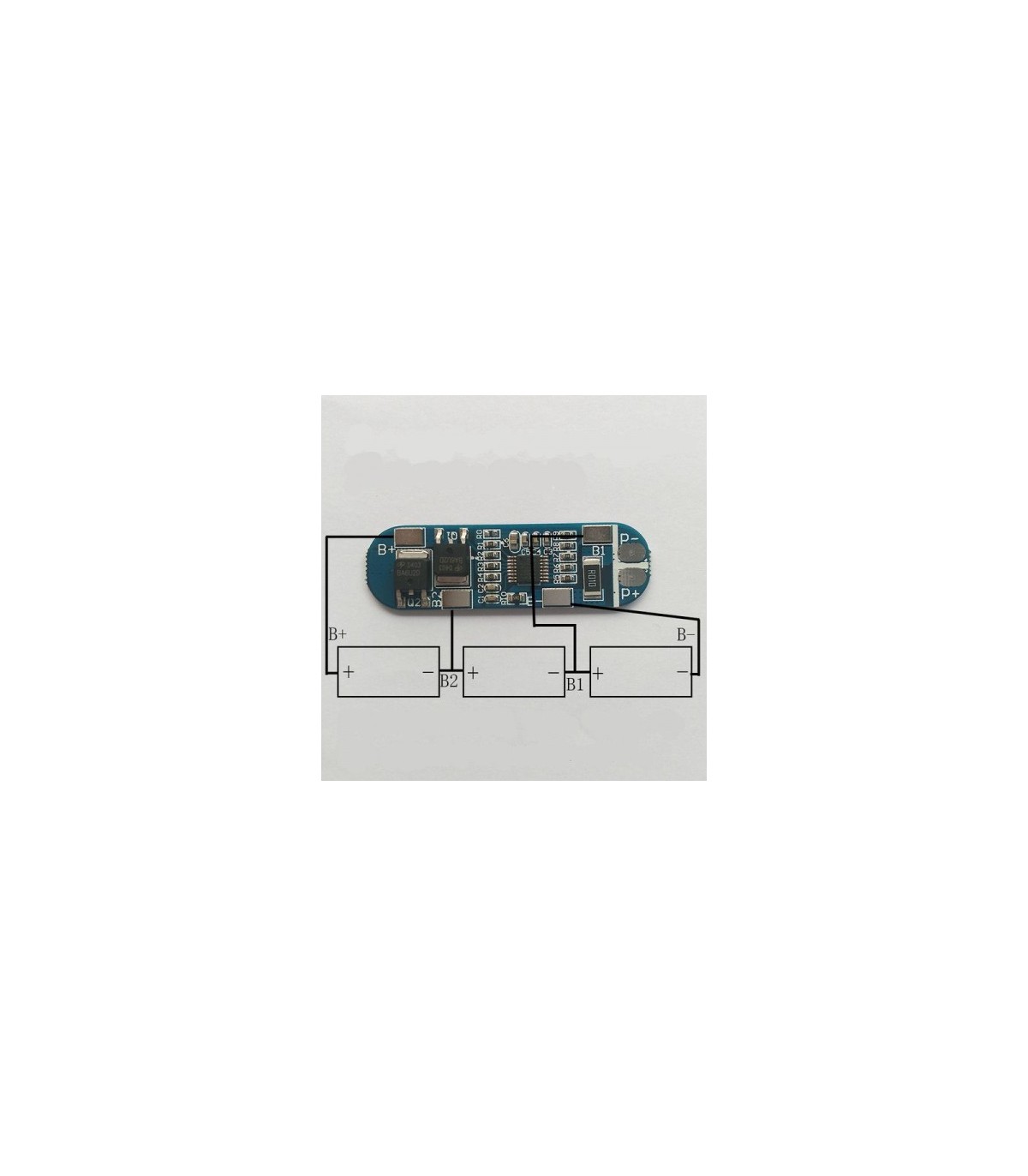 Контролер заряду розряду 3хLi-Ion 18650 12.6V 15A. Технічні характеристики Максимальний струм розряду: 15 А Максимальна напруга при зарядці: 4.25 В ± 0.025 В Перевантаження напруги: 4,35 ± 0,05 В Мінімальна напруга при розрядці: 2.75 В ± 0. 1 В Діапазон напруг на виході: 8.25-12.6 В Розмір: 50х16 мм Функції: захист від перезарядження, захист від перевантаження, захист від короткого замикання Підключення B +, B- пов'язано з акуммулятор (акуммулятор паралельно спаяними) 18650 P +, P- пов'язано з джерелом заряду і розряду
