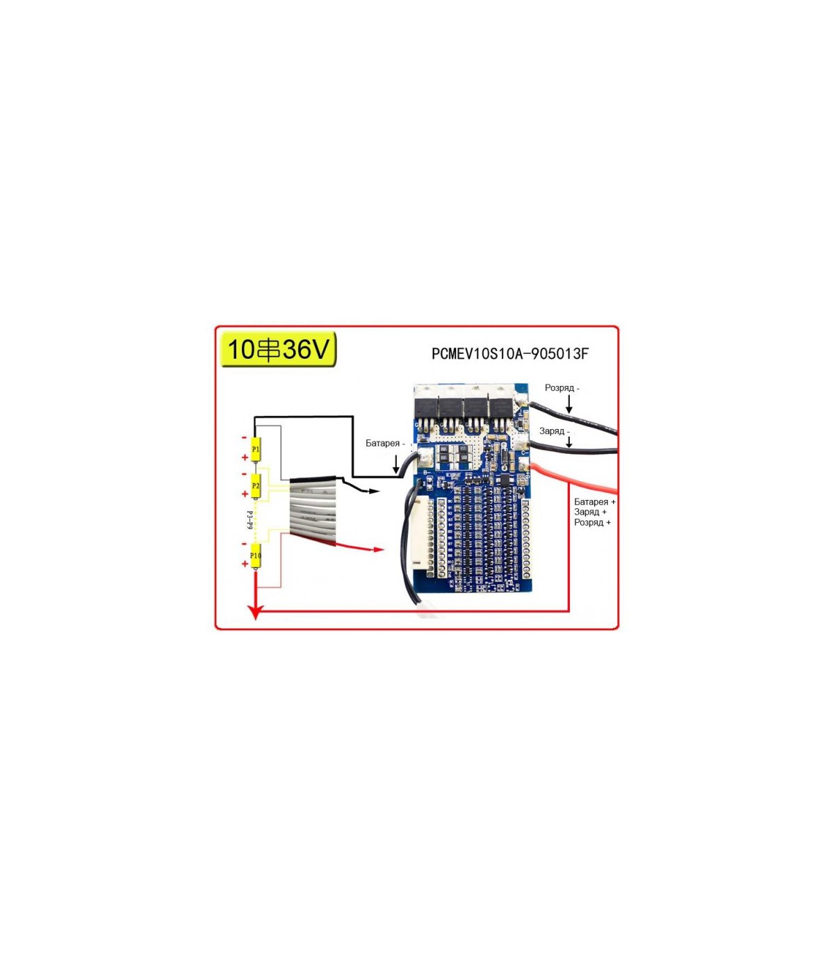Контроллер защиты заряда разряда BMS 10*Li-Ion 36V 10-40A. Если используются б/у аккумуляторы, их перед пайкой нужно обязательно сбалансировать. Схема подключения изображена на одном из фото. Технические характеристики Количество ячеек: 10S Li-Ion/Li-Pol Номинальное напряжения: 36-37V Максимальное напряжения: 42V Ток нагрузки: 10-40А Защита от глубокого разряда: 27V Напряжения/Ток ЗУ: AC/DC 42V 3A Ток балансировки: 100 mA Размеры: 90*50*11 мм
