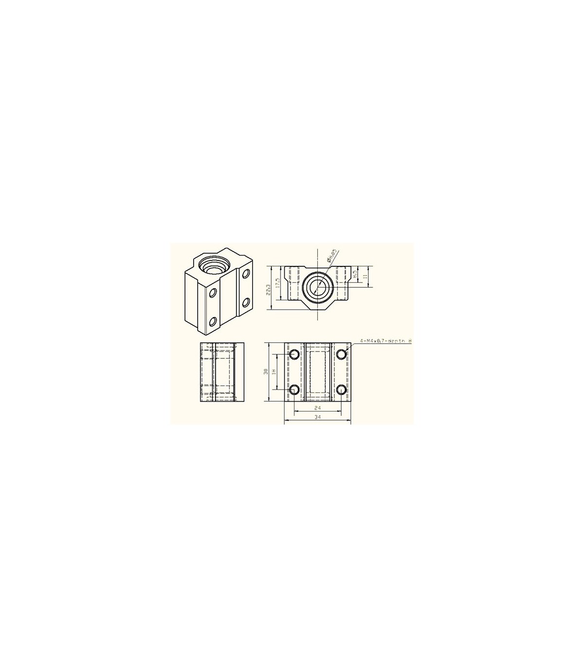 Подшипник линейный SCS8UU предназначен для использования в 3D-принтерах и ЧПУ-станках. Состоит из подшипника LM8UU, который размещен внутри цельного металлического корпуса. Подшипник LM8UU имеет 4 ряда шариков. Его внешний диаметр 15 мм, внутренний 8 мм, длина 24 мм. Корпус линейного подшипника SC8UU имеет 4 крепежных отверстия диаметром 4 мм с резьбой для крепления на плоскую поверхность. Чертежи линейного подшипника SCS8UU представленые на одном из рисунков. Технические характеристики Название: линейный подшипник SCS8UU Внутренний диаметр 8 мм Количество рядов шариков: 4 Размеры корпуса: 30 х 34 х 22,3 мм Отверстия для крепления: резьба М4х0.7 мм (4 шт.) Вес: 46 г * в комплект поставки входит то, что изображено на фото.
