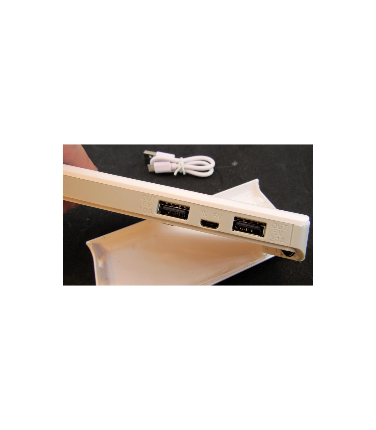 Power Bank на 5 банок 18650 5V 2A с фонариком и двумя USB белый.