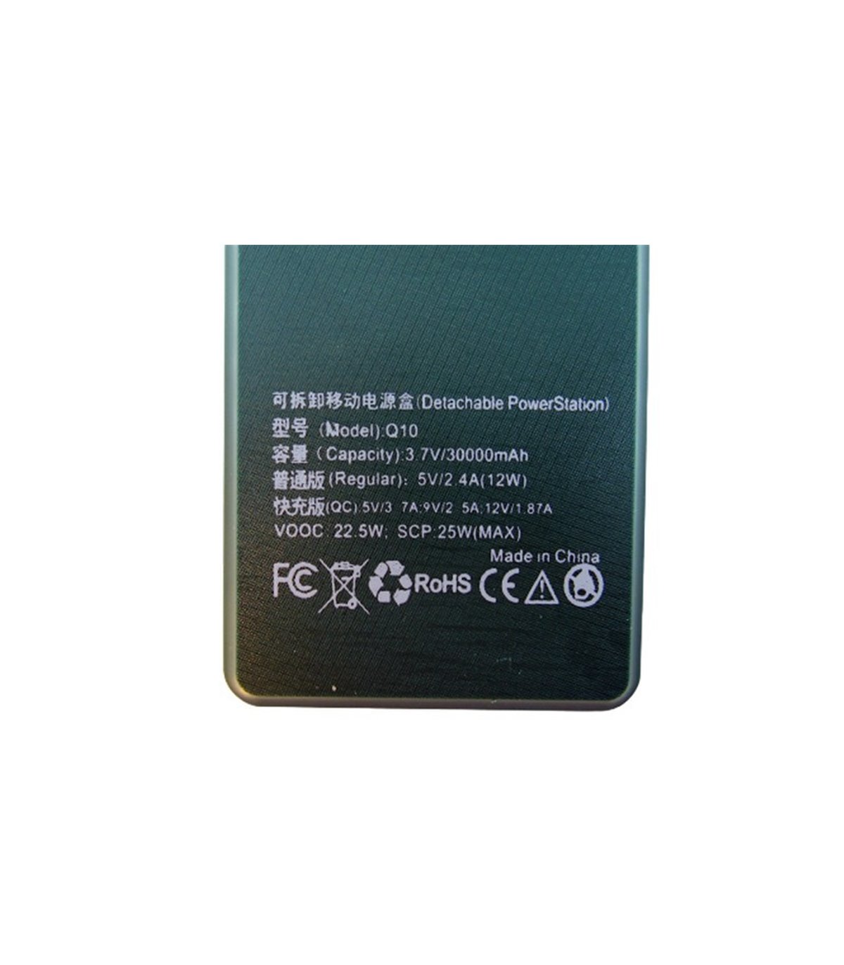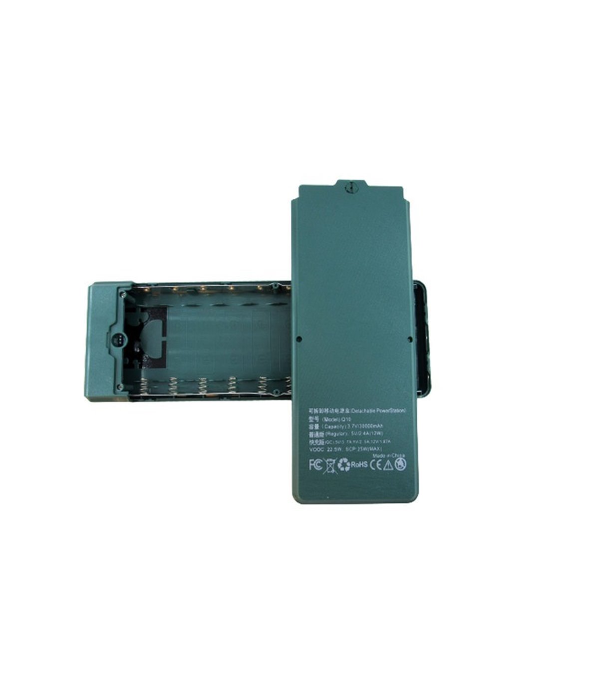прочный АБС пластик, крышка крепится к основе корпуса защелками. Компактный и, прежде всего , эффективный - он полезен, когда требуется дополнительная энергия. С его помощью мы можем заряжать до 2-х разных устройств одновременно! На передней панели корпуса есть встроенный дисплей, который показывает в режиме реального времени процент заряда.