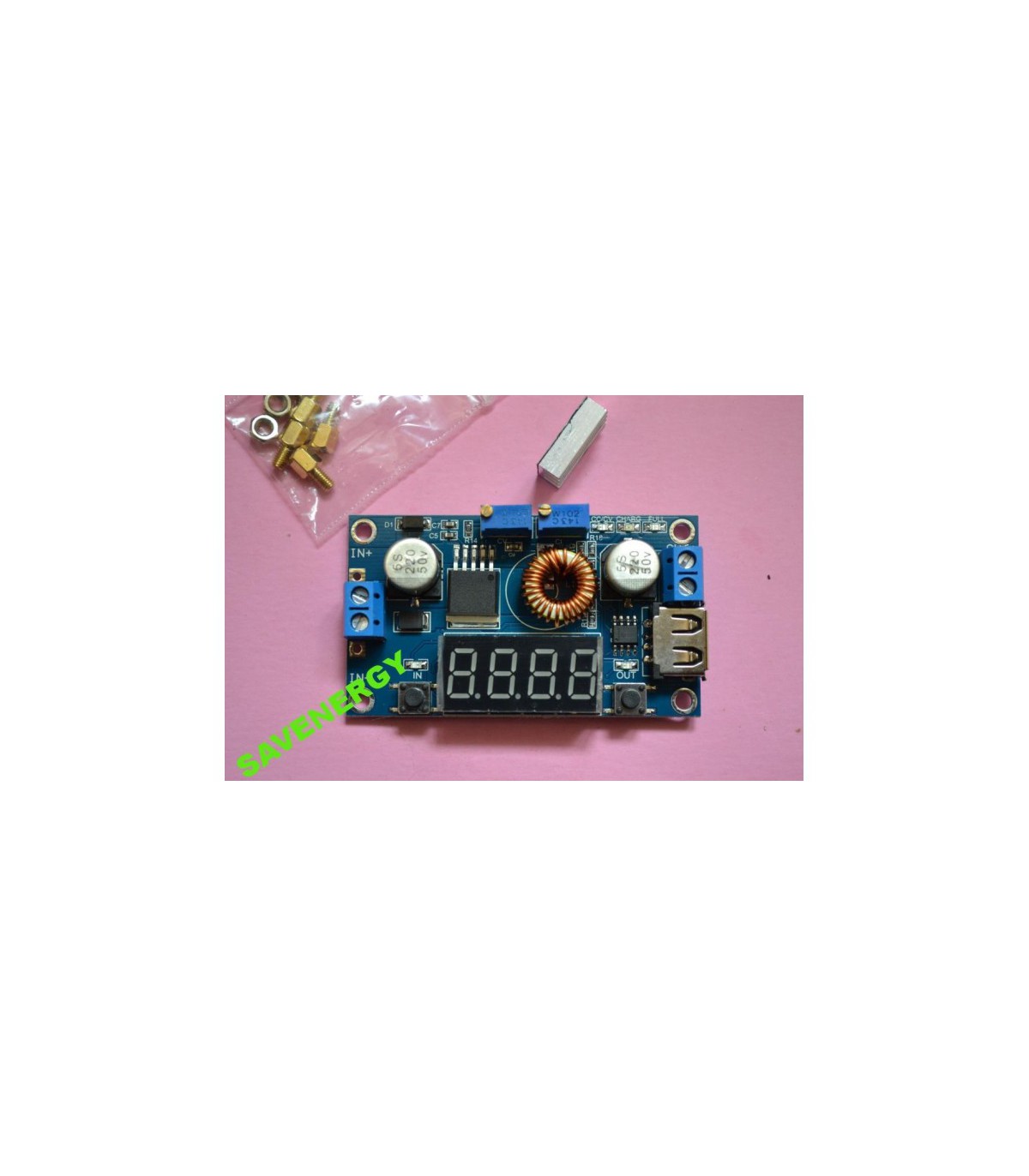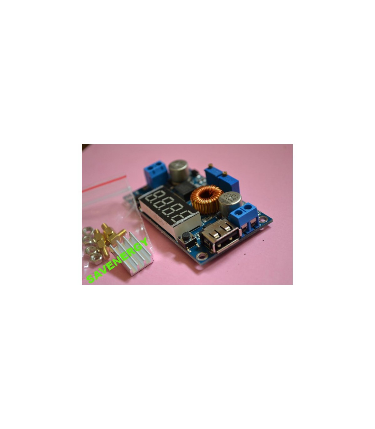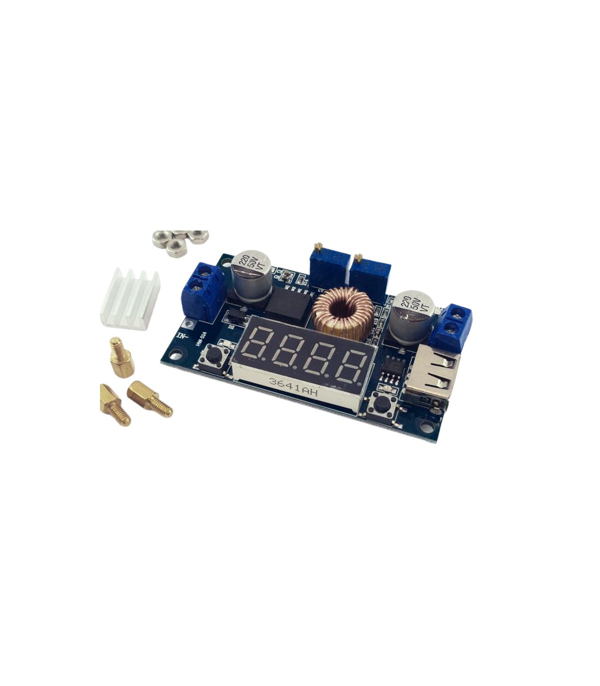 DC-DC понижающий преобразователь напряжения с 5-36В до 1.25-32В 5А c вольтметром. Содержит вольтметр. USB интерфейс для зарядки цифровых продуктов.