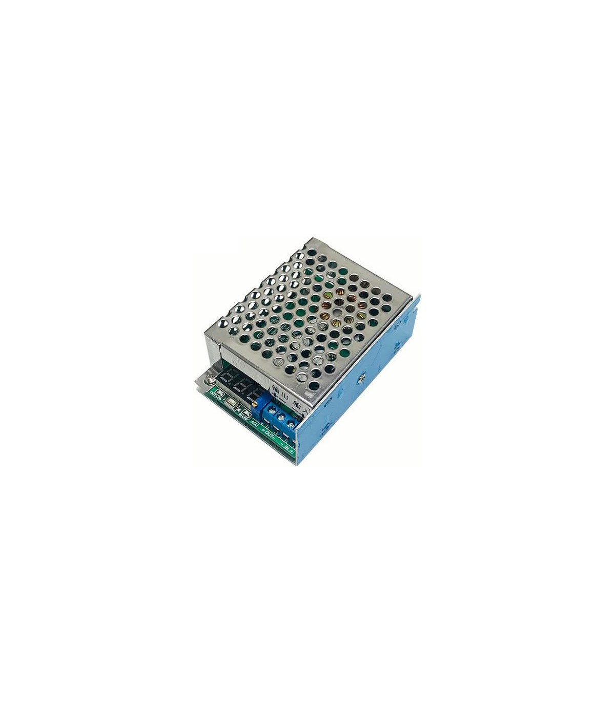 Понижающий преобразователь DC 3.5-30V to 0.8-29V 10A 300W. Встроенный вольтметр отображает входное или выходное напряжение. Для переключения нужно использовать кнопку 2 на плате, светодиоды отображают какое напряжение сейчас показывается. Вольтметр можно выключить, нужно нажать и удерживать кнопку 2 примерно 3 секунды. Дисплей напряжения откалиброван на заводе, дополнительная калибровка не требуется.