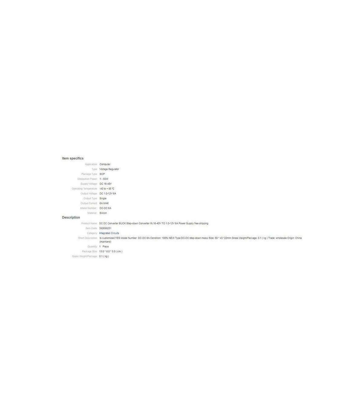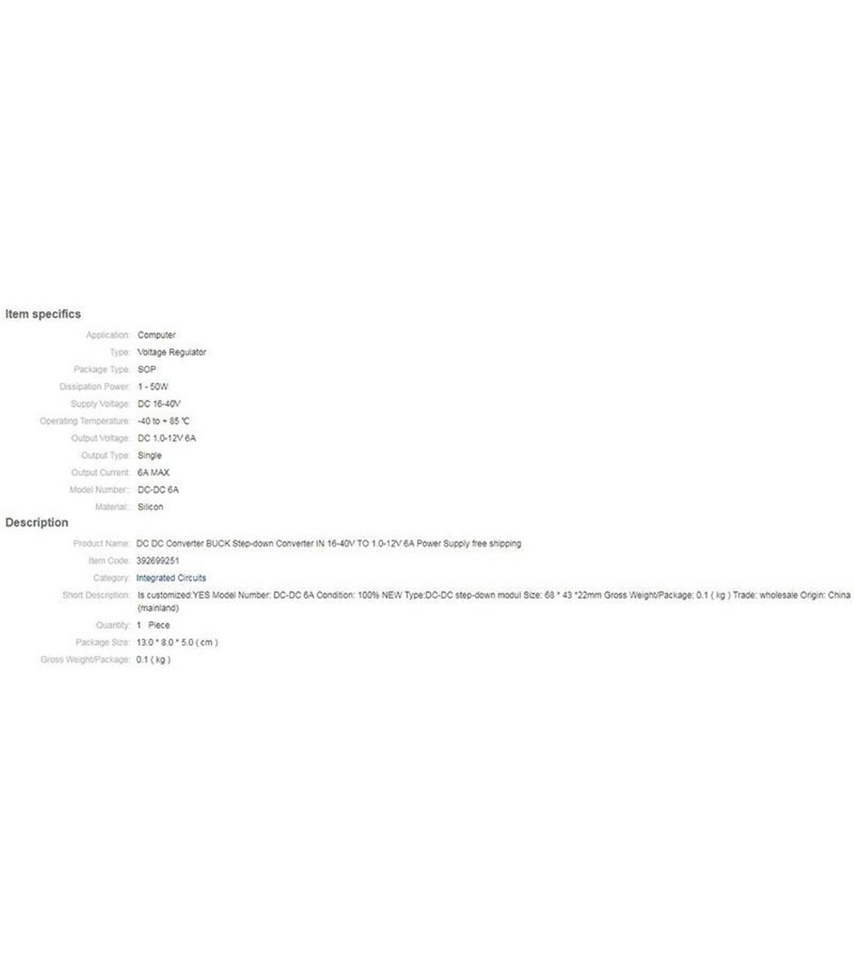 Мощный преобразователь понижающий модуль DC IN 16-40V OUT 1-12V 6A.Описание от производителя