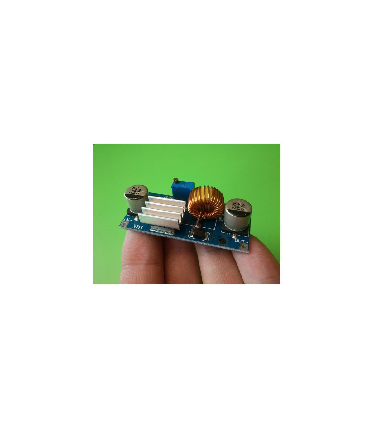 Понижающий преобразователь XL4015 DC-DC 5А 4-38V. Технические характеристики Входное напряжение: 4-38 В Выходное напряжение: 1.25-36 В (плавно регулируемое) Выходной постоянный ток: 0-5 А (по умолчанию выход: 3 А) Мощность: 75 Вт Рабочая температура: -40 до + 85 градусов Рабочая частота: 180 кГц Эффективность передачи: максимум 96% Защита от короткого замыкания: да Защита от перегрева: да Защита от обратной полярности: нет Размер: 54х23х18 мм