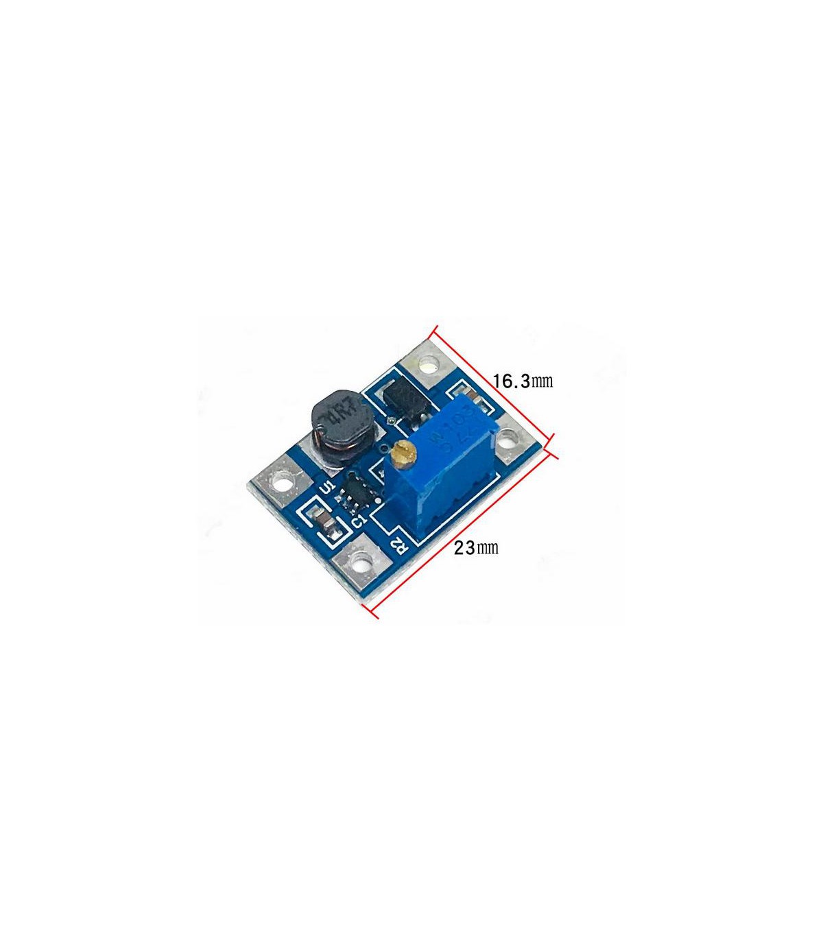 Повышающий преобразователь напряжения SX1308 2-28V 2A импульсный регулируемый - входное напряжение от 2 до 24 вольт, выходное напряжение регулируемое от 5 до 28 вольт, выходной ток до 2 ампер, встроенная защита от короткого замыкания. Повышающий импульсный регулируемый преобразователь напряжения 2-28V 2A, собран на микросхеме SX1308, по топологии boost. Более подробную информацию Вы сможете получить из документации к микросхеме SX1308. Повышающий преобразователь напряжения SX1308 2-28V 2A предназначен для получения регулируемого напряжения от 5 до 28 вольт, с током нагрузки до 2A от блока питания, батареек, Li-Ion аккумулятора 3.7V, солнечной батареи, ветрогенератора или ручной динамо-машины. Достоинством импульсного регулируемого преобразователя напряжения SX1308 2-28V 2A является то, что он способен работать от очень низкого напряжения - всего 2 вольта, и имеет малые габаритные размеры. Повышающий импульсный преобразователь напряжения применяется как стабилизированный и экономичный источник питания: измерительные и диагностические приборы, фото и видео камеры, MP3 и MP4 плееры, GPS-навигаторы, светодиодная подсветка и освещение, беспроводные устройства – передатчики, клавиатуры и мышки. Технические характеристики Входное напряжение: 2 - 24V Выходное напряжение: от 5 до 28 вольт регулируемое Выходной ток: 2 A (MAX) Встроенная защита: от короткого замыкания Размер платы: 23 х 16 х 13 мм Вес: 4 г