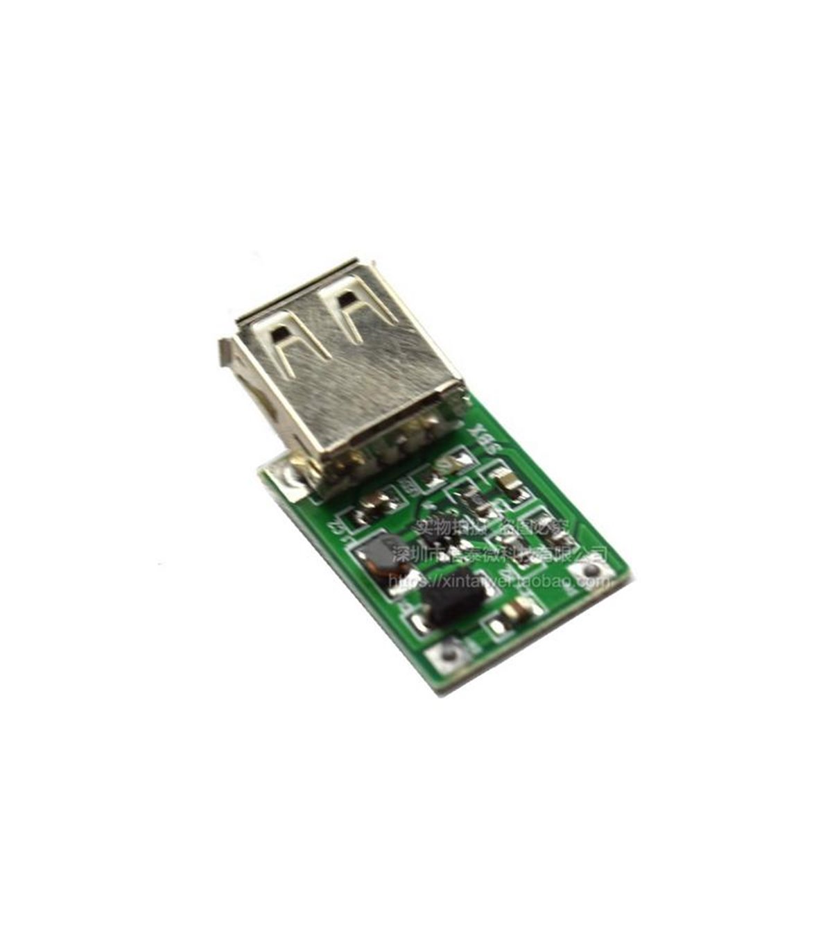 Устройство собрано на монолитном ШИМ-регуляторе напряжения CE8301E с частотой переключения 100кГц. При подключении последовательно двух батарей типа AA (пальчиковые) ток на выходе USB устройства составит 500 - 600мА. От одной батареи - 200мА. На плате устройства расположен индикатор входного напряжения. Подключение батареи к плате осуществляется к выводам 'IN+' и 'IN-' с соблюдением полярности. Технические характеристики Входное напряжение: постоянное 0,9 - 5В Выходное напряжение: постоянное 5В Отклонение выходного напряжения: не более 2% Максимальный ток нагрузки: 0,6А КПД: 85% Рабочая температура: -40°C - +85°C Габариты (ШхГхВ): 25х18х10(мм) Вес: 4г