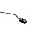 Клемма для кроны аккумулятора 9В. Технические характеристики Длина кабеля: 15 см Жесткий пластик разъем Т-типа 15см разделеных и луженых проводов, 1 красный и 1 черный для облегчения идентификации и пайки