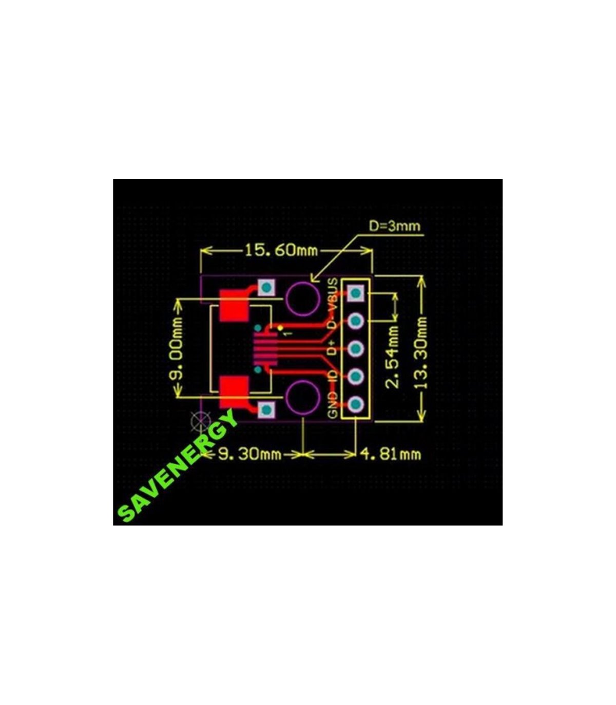Модуль micro usb, легко превращается в обычный DIP 2.54mm контакт и можно использовать с макетными платами а также з другими електроными самоделками. Имеет два отверствия для крепления Размер: 15.6 х 13.3 мм Шаг контактов: 2.54 мм