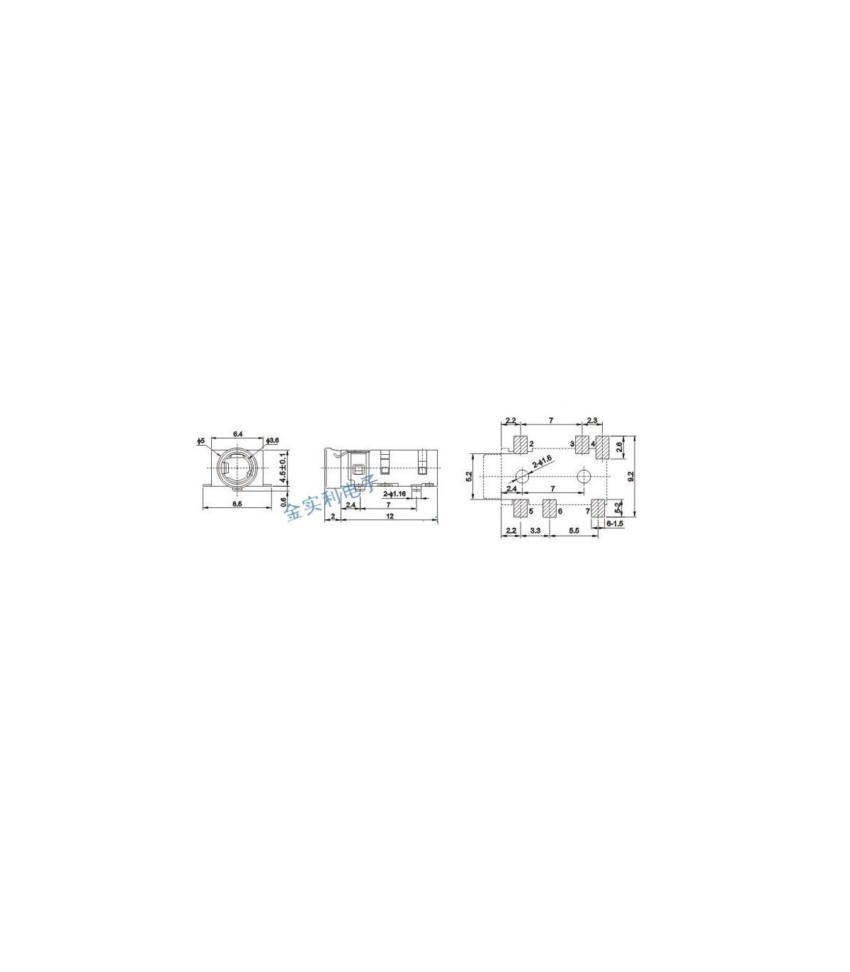 Разъем под пайку PJ342B 6pin. Размер разъема указан на рисунке.