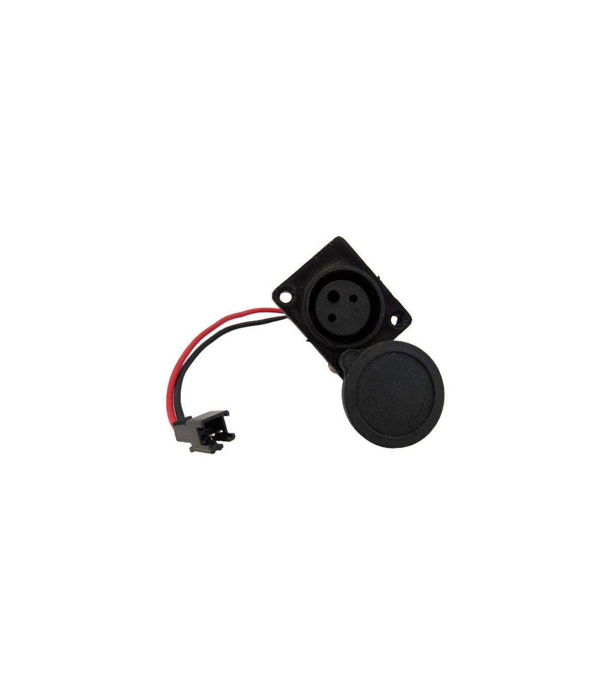 Разъем зарядки для электровелосипеда, является универсальным и подходит для любого велосипеда. В комплекте с заглушкой, которая предотвращает попадание пыли и влаги в контакктну группу. Монтируется в корпус батареи с помощью двух болтов. Длина провода составляет 21см.