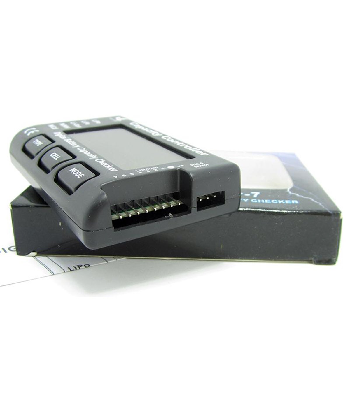Cellmeter-7 - аккумуляторный тестер, который должен иметь каждый RC моделист. Он способен измерить напряжение каждой ячейке и всего аккумулятора в целом, а также показать оставшуюся его емкость. Кнопка выбора режима измерений позволит вам замерить самое высокое и самое низкое напряжение ячеек и покажет разницу напряжений на ячейках при подключение через балансировочный разъем аккумулятора.