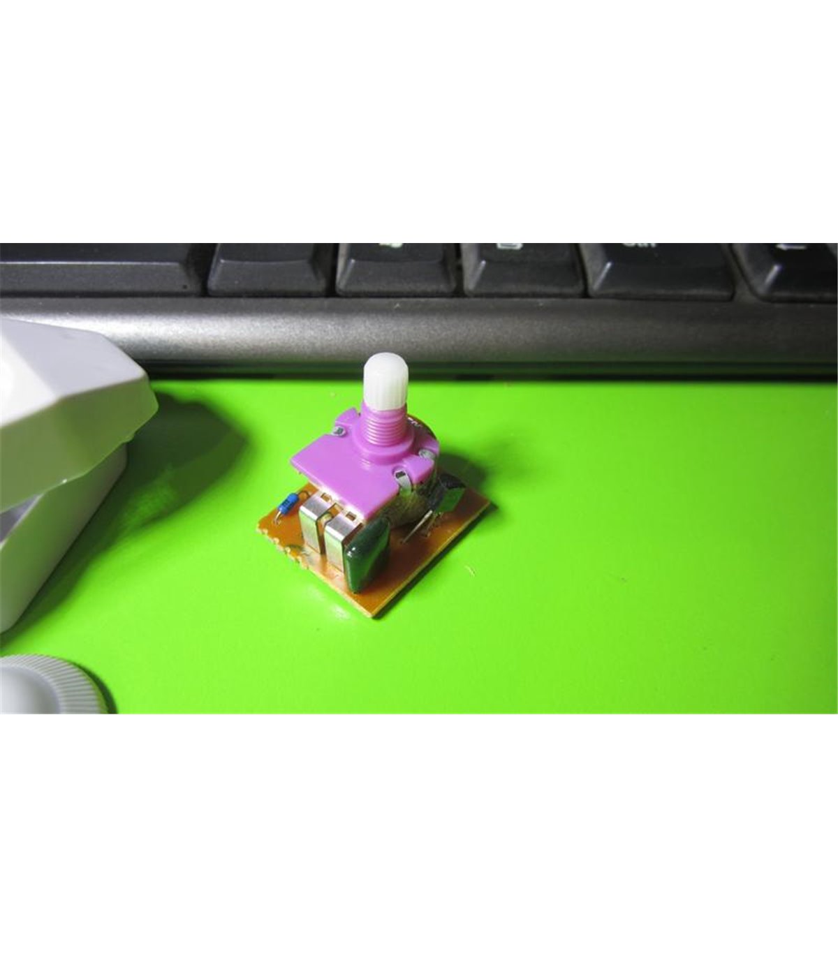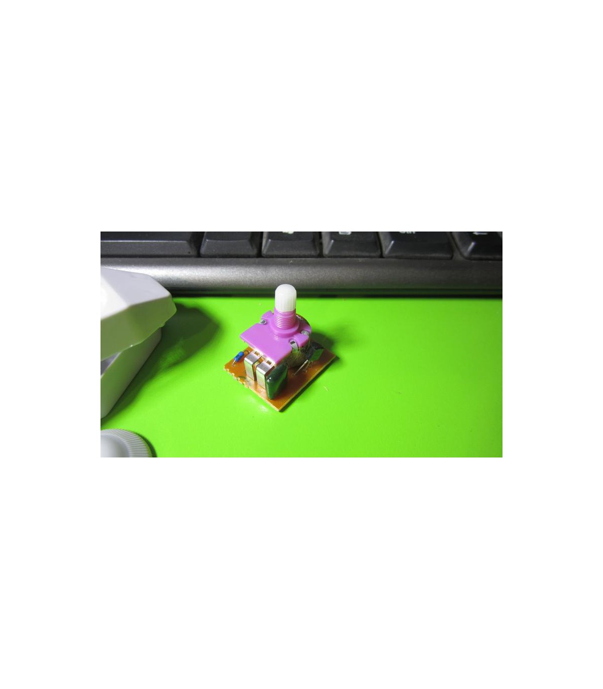 Светловой регулятор модулятор света диммер управления. Технические характеристики: 90см, 250V, 100W. На лицевой стороне есть едва различимые под определенным углом надписи «ON» и «OFF» и шкала, которую также можно увидеть только если присматриваться. Включение и выключение достигается прощелкиванием крутилкой из крайнего положения «OFF», далее ее вращение регулирует яркость. С обычной лампой накаливания диммер работает вполне. Ничего не трещит, ничего не мерцает.