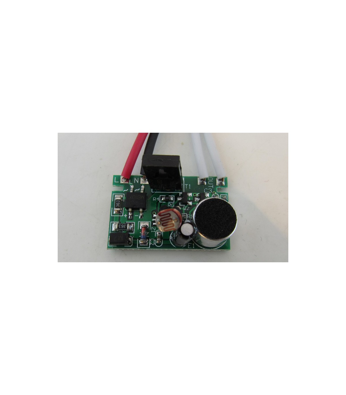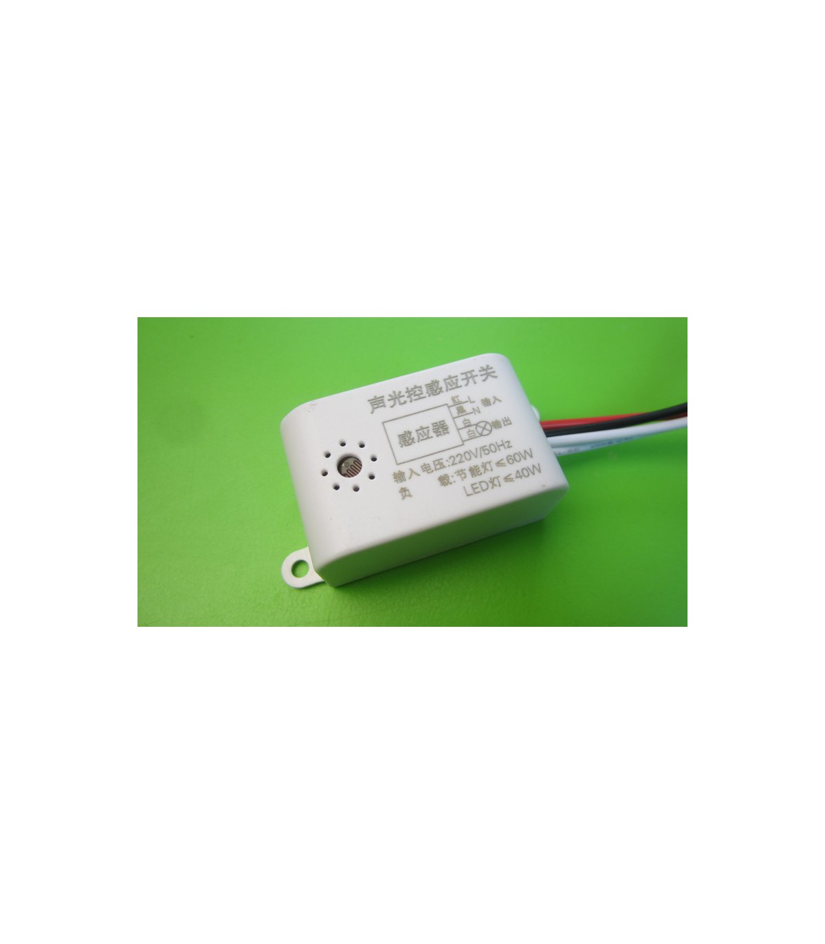 Датчик реле звука движения для освещения 40-60W. Технические характеристики Модель: YX-521 Размер: 50*31 мм Входное напряжение: 110-220 В Выходное напряжение: 110-220 В Мощность: &lt,60 Вт Чуствительность: 50 Дб, 15 Люкс