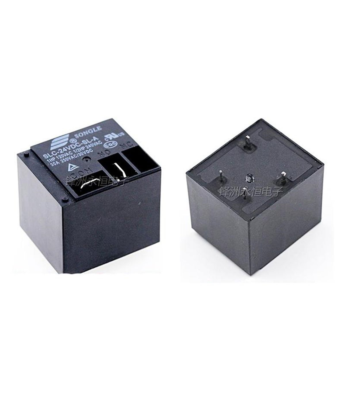 Контактное реле нормально разомкнутое SLC-24-SL-A 250VAC 30A SONGLE. Технические характеристики Размеры: 32.2x27.6x27.6мм Номинальное напряжения включающей катушки: 24В Ток потребления: 77мА Сопротивление катушки: 150Ом Номинальный ток контактов: 30А