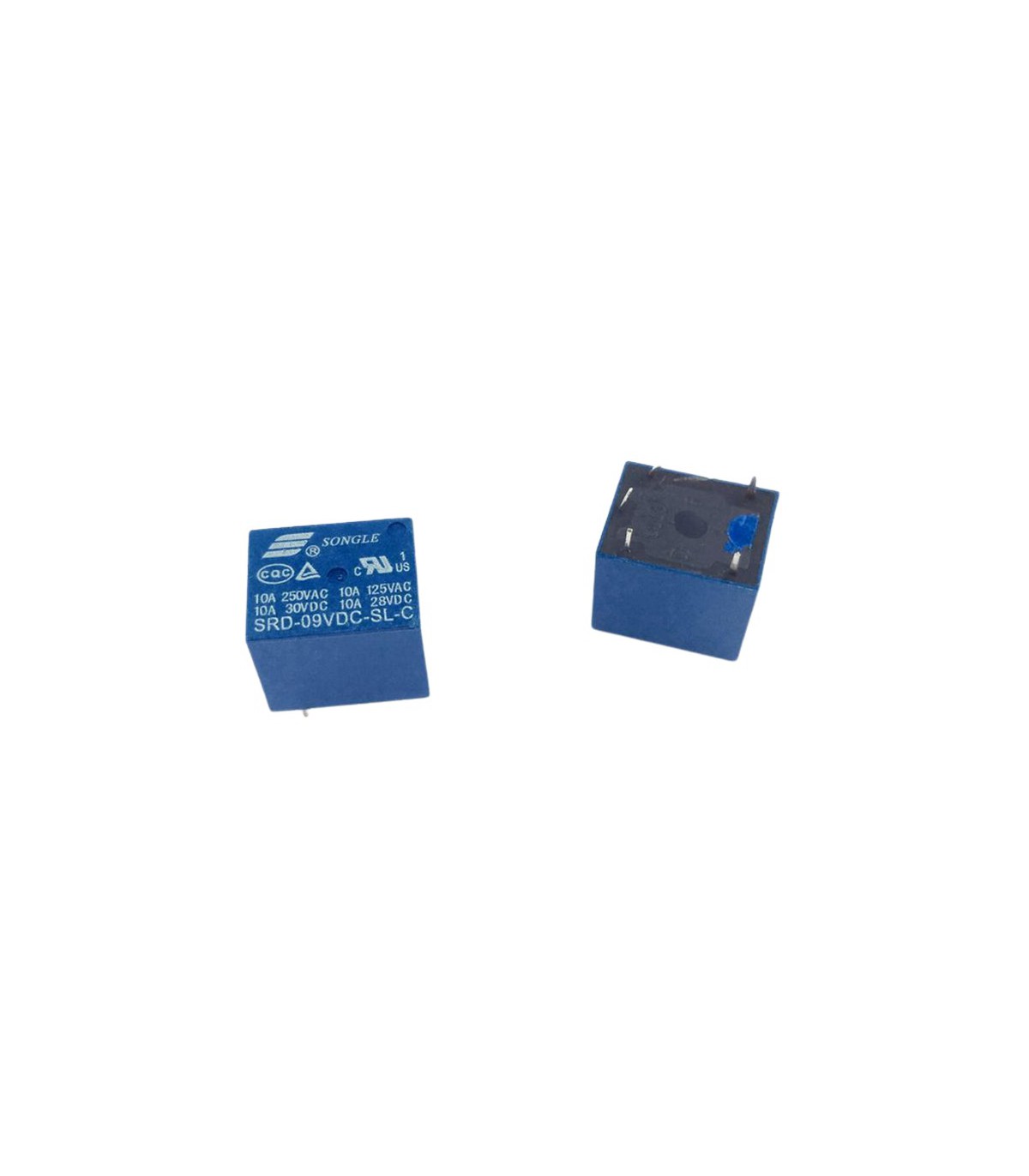 Реле электромагнитное SRD-09VDC-SL-C. Технические характеристики Напряжение: 9В Ток: 10A 1 группа на переключение Размеры: 19.2х15.5х15.2 мм