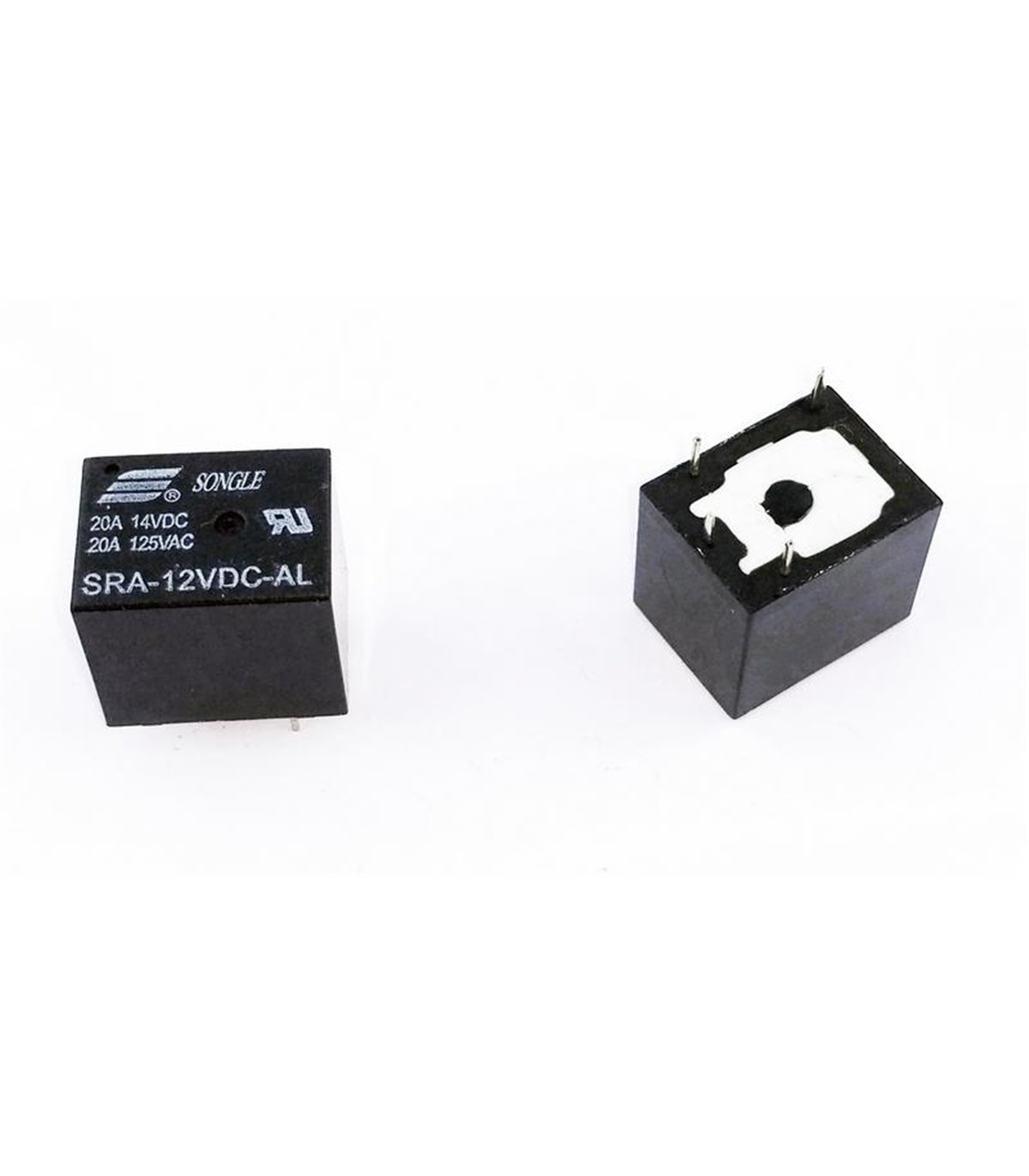 SRA - реле с одной переключающей группой контактов для монтажа на печатную плату. Применяются в автомобильной и иной электронной аппаратуре. Материал контактов: сплав серебра. Макс.напряжение на контактах: 30V DC / 250V AC. Макс.переключаемый ток: 20А. Габаритные размеры: 15.5х12х13.5mm.
