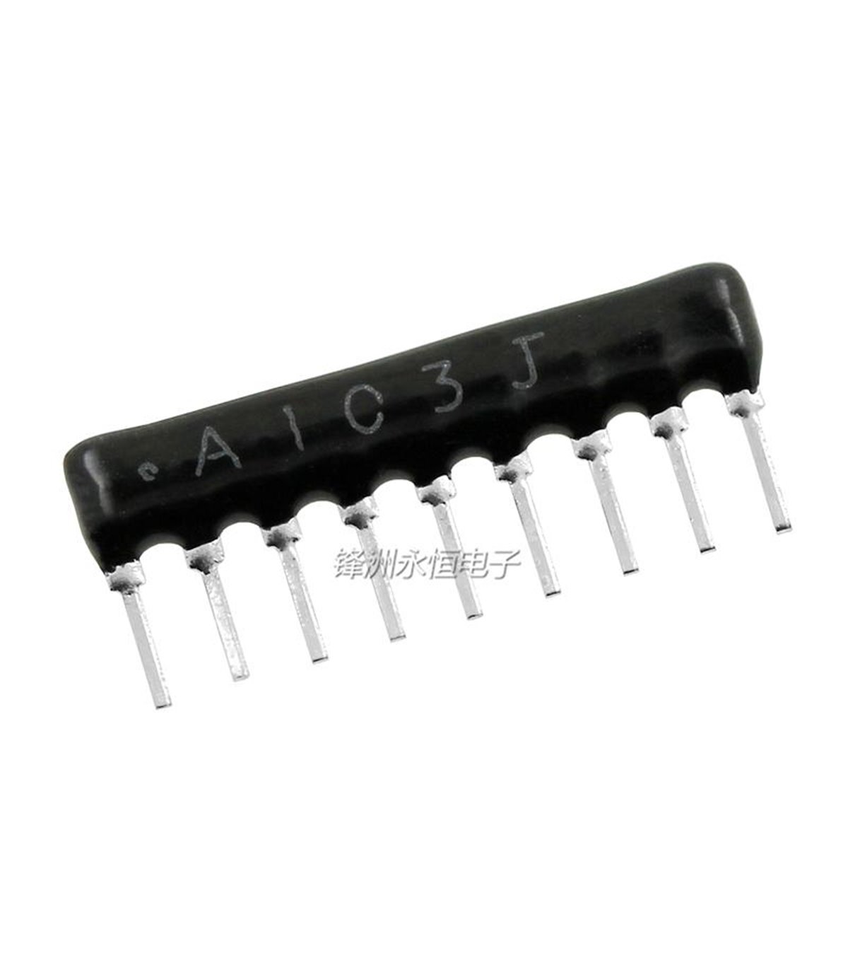 НР-1-4-8М 10 кОм имп. (9A103J). Металлопленочные резисторные сборки на керамической подложке с покрытием специальной эпоксидной резиной и с жесткими выводами. Применяются в устройствах с микропроцессорным управлением, в видеомагнитофонах, компьютерах, факсимильных аппаратах, автомагнитолах и других приложениях, где требуется высокая плотность монтажа. Технические характеристики Количество элементов: 4, 8 и 9 Диапазон сопротивлений: 10 Ом - 1 МОм (ряд е12) Точность: ±5% Рассеиваемая мощность: 0.125 Вт (одного элемента) Максимальное рабочее напряжение: 100 В Диапазон рабочих температур: -55 ...+125°C Тип: нр1-4 Номинальное сопротивление: 10 Единица измерения: ком Точность,%: 5 Номин.мощность,Вт: 0.125 Макс.рабочее напряжение,В: 100 Рабочая температура,С: -55…125 Количество резисторов: 8 Схема соединения: a Корпус: sil