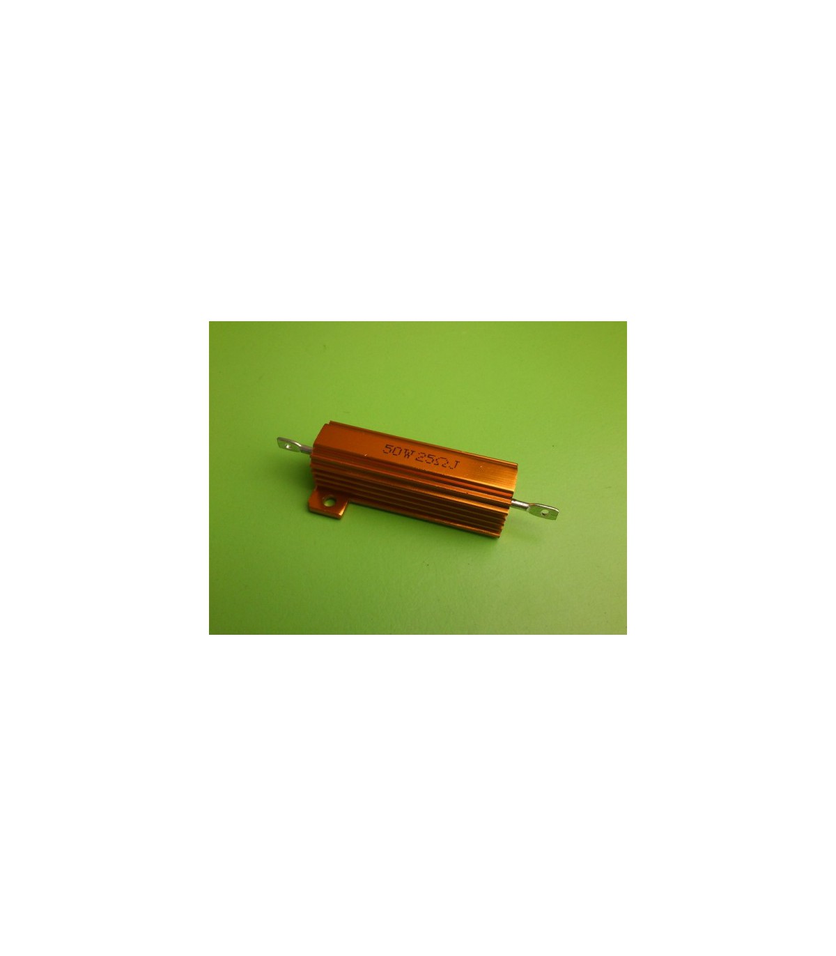 Силовий резистор RX24 RXG24 - постійний дротяний резистор, з номінальним опором 25 Ом, що розсіюється потужність резистора - 50Вт. Використовуються для експлуатації в ланцюгах постійного і змінного струму, забезпечуючи обмеження сили струму і розподіл напруги, іншими словами як гальмівні резистори. Конструктивно силові резистори RX24, RXG24 виконані з обмоткою з ніхрому в керамічної оболонці. Монолітність конструкції забезпечується Капсулювання за допомогою термостійкого компаунда в алюмінієвому корпусі, за що їх часто називають як резистори AHR (Aluminum housed resistor). На торцях резистора розміщені жорсткі виведення зі сталі, кріплення проводів за допомогою гайок або гвинтів. Для кріплення додаткового радіаторного тепловідведення на корпусі гальмівного резистора RX24, RXG24 передбачені кріпильні отвори під гвинт. Застосовуються потужні силові резистори RX24, RXG24 як енергорозсіювального елемента при гальмуванні асинхронних електродвигунів в високоінерціонних механізмах підйомно-транспортного (крани, різні підйомники або ліфти, похилі транспортери і транспортні візки), високоінерціонного (рольганги, центрифуги, димососи, тягодуттьові механізми) і верстатного застосування (шліфувальні, свердлильні і токарно-гвинторізні верстати) і ін. Технічні характеристики Потужний резистор з обмоткою з ніхрому в керамічної оболонці і алюмінієвому корпусі RXG24 Номінальна потужність: 50W Допустиме відхилення опору: 5% Номінальний опір: 25R Розмір: 71 × 29 × 15,5 мм